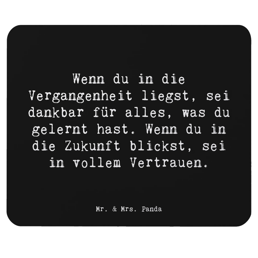 Das Mauspad wird aus hochwertigem Zellkautschuk in Deutschland gefertigt und bietet eine rutschfeste und ergonomische Oberfläche. So wird das Arbeiten am Computer nicht nur einfacher, sondern auch gesünder für Deine Handgelenke. Die abriebfeste und feuchtigkeitsabweisende Beschichtung sorgt dafür, dass Du lange Freude an diesem Accessoire hast. Mache Deinen Arbeitsplatz zum Ort der Inspiration mit einem hübschen Spruch, der Dir stets ein Lächeln ins Gesicht zaubert: "Wenn du in die Vergangenheit liegst, sei dankbar für alles, was du gelernt hast. Wenn du in die Zukunft blickst, sei in vollem Vertrauen."