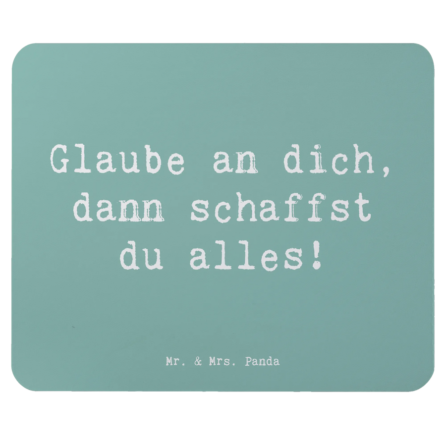 Das Mauspad "Angst überwinden" aus der Mutmacher Kollektion von Mr. & Mrs. Panda ist nicht nur ein praktisches Zubehör für dein Büro oder Homeoffice, sondern auch ein täglicher Mutmacher für dich. Mit dem inspirierenden Spruch "Glaube an dich, dann schaffst du alles!" auf einem stilvollen und ansprechenden Design bietet dieses Mauspad eine hervorragende Oberfläche für deine Maus und ein kleines Stückchen Motivation während des Arbeitstags.