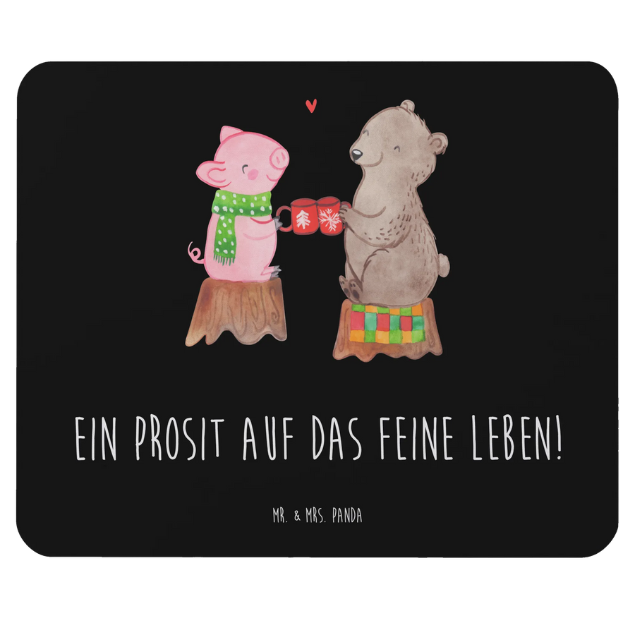 Suchst du nach dem perfekten Geschenk für die Weihnachtszeit? Unser Mauspad "Glühschwein Sause" von Mr. & Mrs. Panda ist die ideale Wahl! Dieses außergewöhnliche Mauspad ist nicht nur praktisch für dein Arbeitszimmer oder Homeoffice, sondern auch ein wunderschönes Accessoire, das dir täglich Freude bereitet. Mit seinem einzigartigen Design zeigt es die herzliche Szene von einem Bären und einem kleinen Schweinchen, die fröhlich mit einer Tasse anstoßen und sich besinnliche Wünsche zur Weihnachtszeit senden. Der Slogan "Ein Prosit auf das feine Leben!" unterstreicht die liebevolle Botschaft und bringt ein Lächeln auf dein Gesicht, egal ob beim Arbeiten oder während der Feiertage.