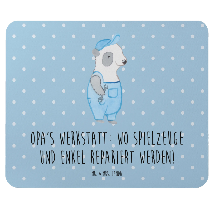 Das wunderschöne Mauspad von Mr. & Mrs. Panda mit dem liebevollen Motiv "Opa's Werkstatt: wo Spielzeuge und Enkel repariert werden!" ist das perfekte Geschenk für alle Großeltern und ein einzigartiges Stück, das in jedes Arbeitszimmer oder Homeoffice gehört!