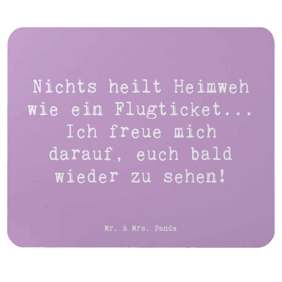Auf dem schönen Mauspad steht der liebevolle Spruch: "Nichts heilt Heimweh wie ein Flugticket... Ich freue mich darauf, euch bald wieder zu sehen!" und sorgt damit für eine wunderbare Stimmung bei der Arbeit oder im Homeoffice.