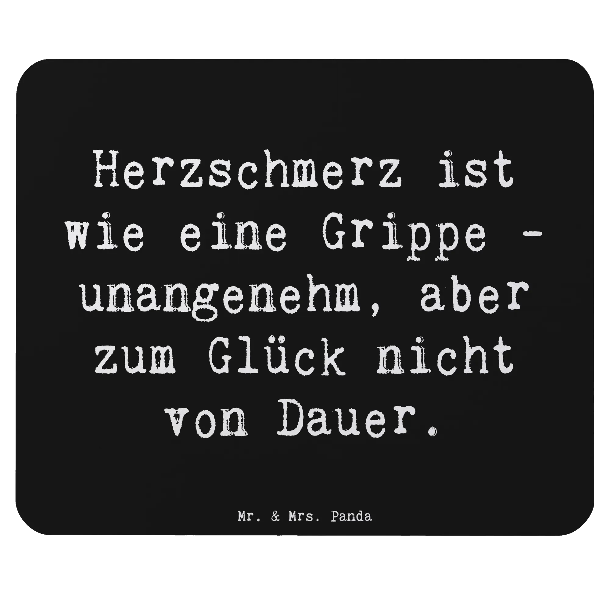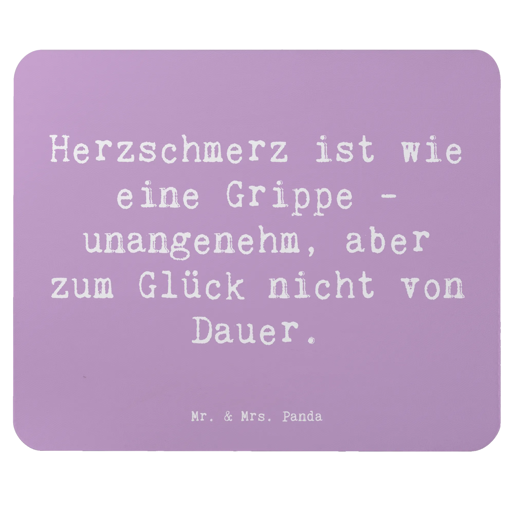 Mit dem Spruch "Herzschmerz ist wie eine Grippe - unangenehm, aber zum Glück nicht von Dauer" bietet dir dieses Mauspad eine charmante und aufmunternde Erinnerung, dass auch schlechte Zeiten vorübergehen.