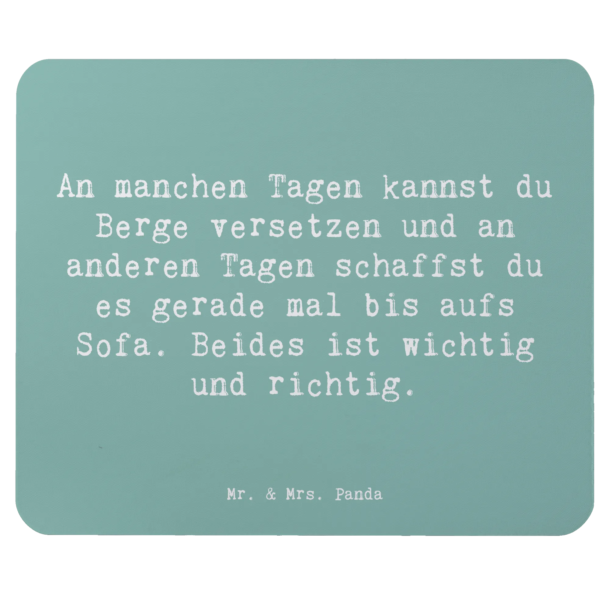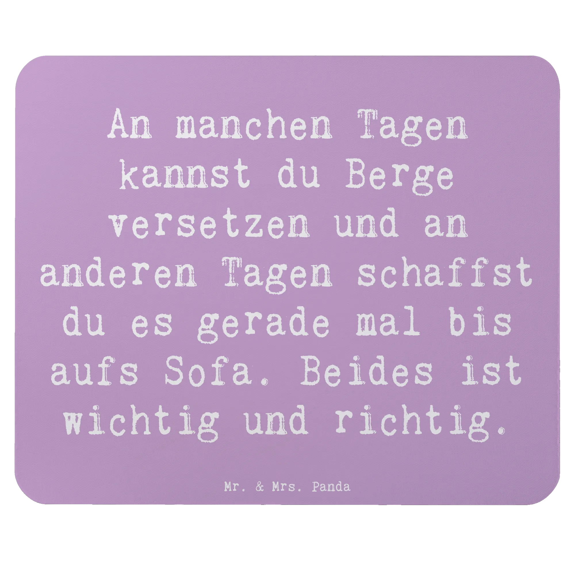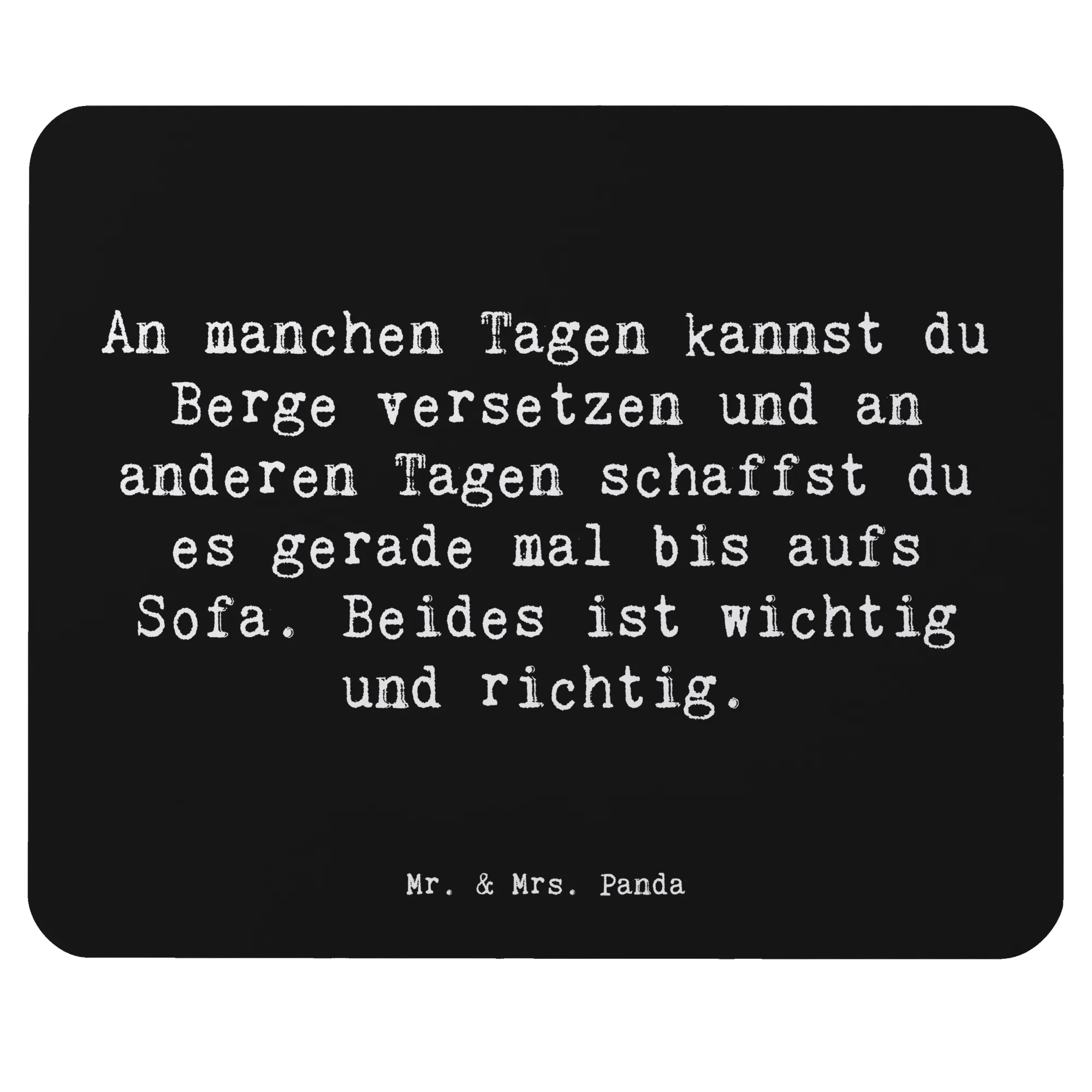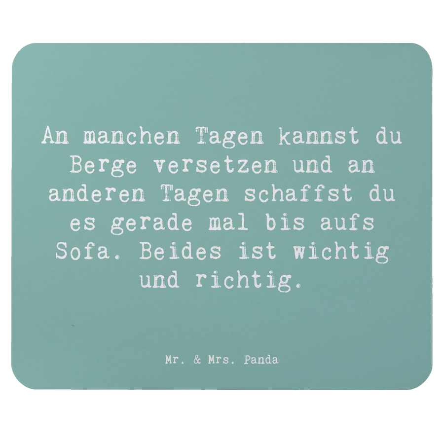 Der Spruch auf dem Mauspad "An manchen Tagen kannst du Berge versetzen und an anderen Tagen schaffst du es gerade mal bis aufs Sofa. Beides ist wichtig und richtig." erinnert uns daran, dass sowohl die produktiven als auch die ruhigen Tage ihren Platz haben. Es spricht Menschen an, die sich Motivation und einen positiven Mindset wünschen, seien es Studierende, Berufstätige oder kreative Köpfe.