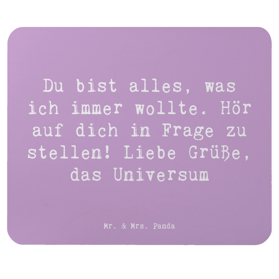 Mit einem liebevoll gestalten Design, das die Worte „Du bist alles, was ich immer wollte. Hör auf dich in Frage zu stellen! Liebe Grüße, das Universum“ trägt, ist dieses Designer Mauspad ein perfekter Begleiter in deinem Arbeitszimmer oder Homeoffice.