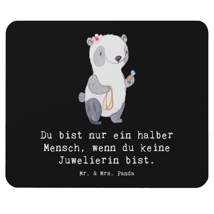 Das Mauspad Juwelierin mit Herz von Mr. & Mrs. Panda ist das perfekte Geschenk für alle, die in der Schmuckbranche arbeiten oder einfach eine Leidenschaft für schönen Schmuck haben. Mit einem liebevoll gestalteten Design und dem Spruch 'Du bist nur ein halber Mensch, wenn du keine Juwelierin bist' macht es dieses Mauspad nicht nur optisch zu einem Highlight, sondern bringt auch eine Portion Humor in den Büroalltag.