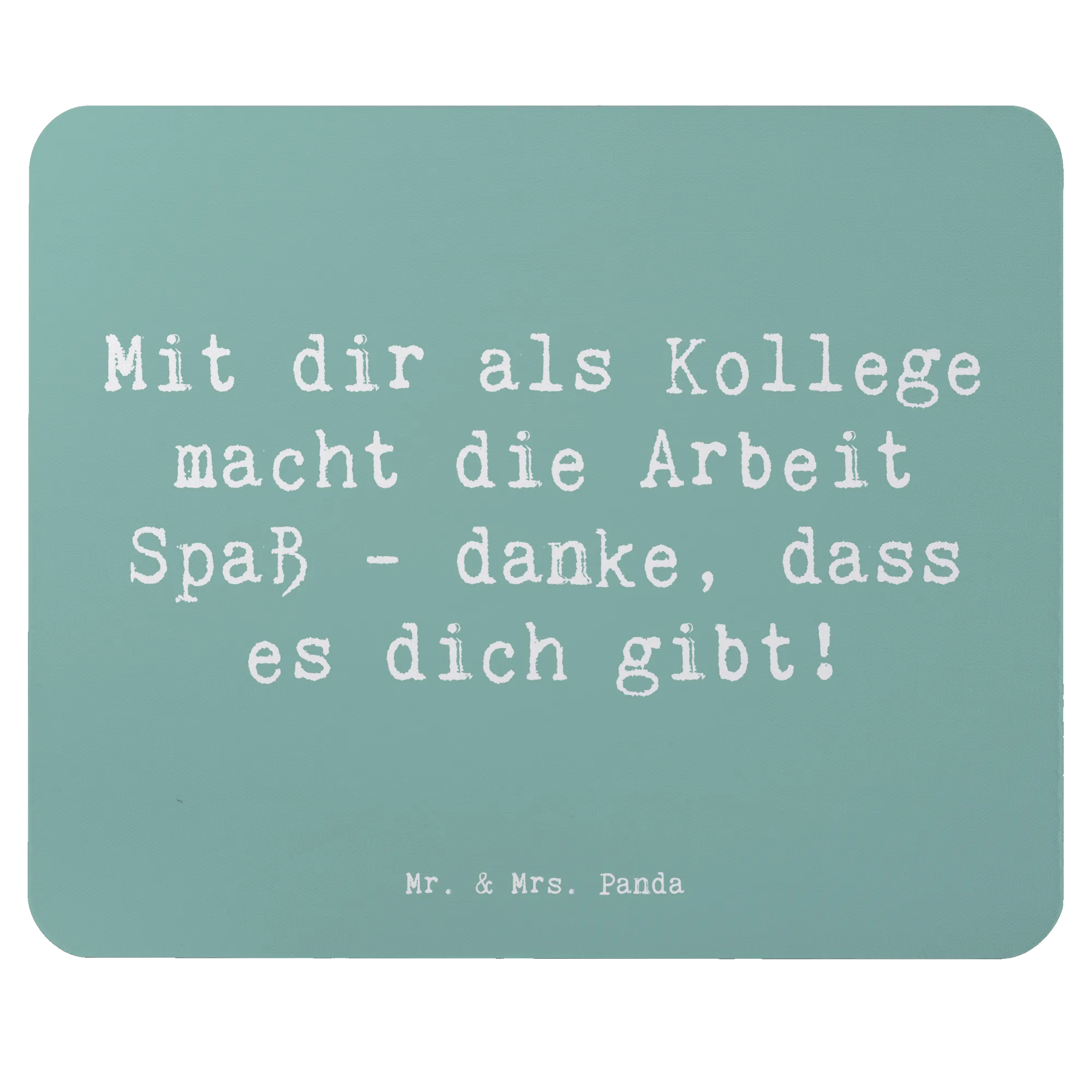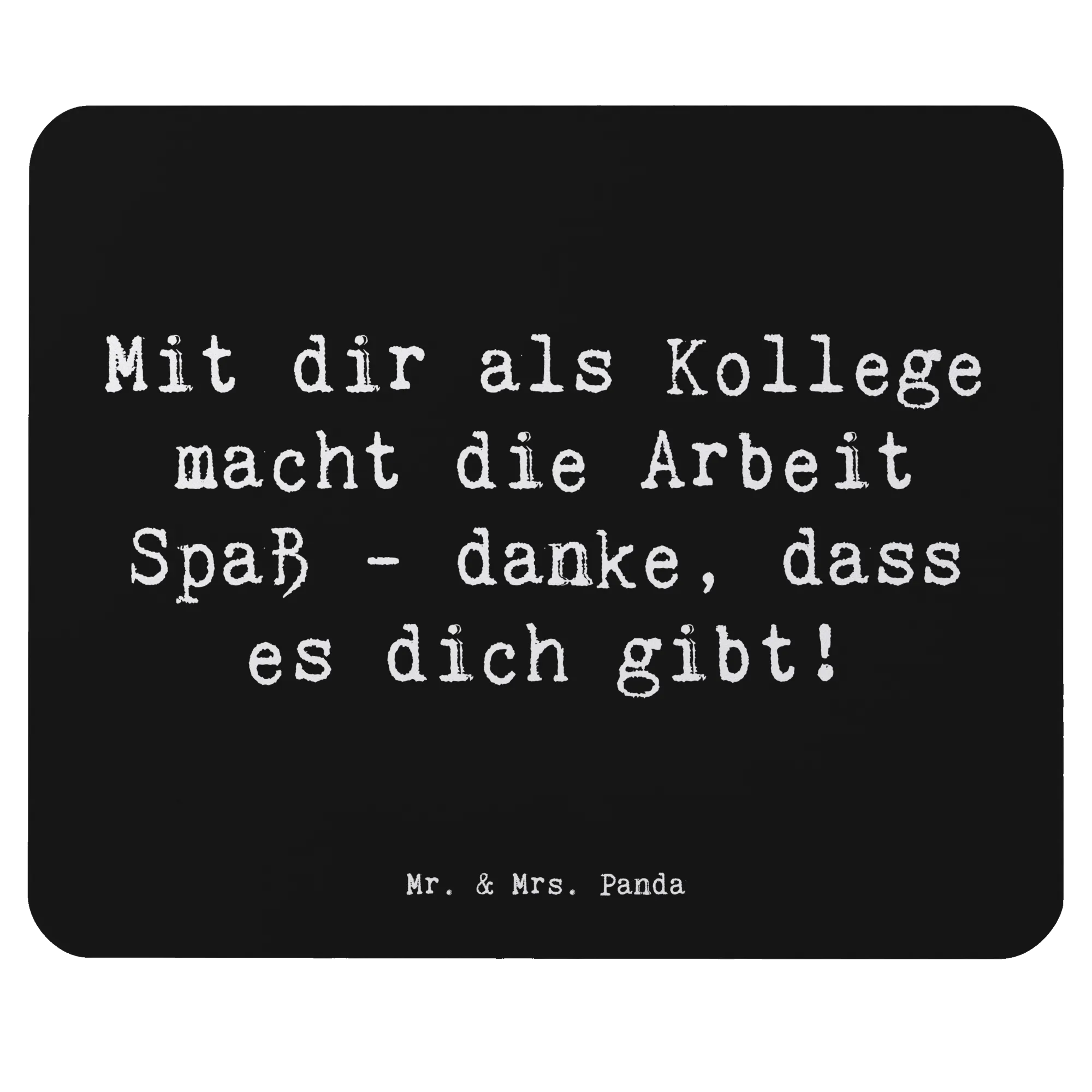 Suchst du das perfekte Geschenk für deinen Kollegen oder Freund im Büro? Dann ist unser einzigartiges Mauspad "Kollege" aus der tollen "Danke"-Kollektion von Mr. & Mrs. Panda genau das Richtige für dich! Mit dem liebevollen Slogan "Mit dir als Kollege macht die Arbeit Spaß - danke, dass es dich gibt!" bringt dieses Mauspad nicht nur Farbe, sondern auch jede Menge positive Energie an deinen Arbeitsplatz. Egal, ob für den Schreibtisch im Büro oder im Homeoffice, dieses Mauspad ist eine wunderbare Möglichkeit, deine Wertschätzung zu zeigen.