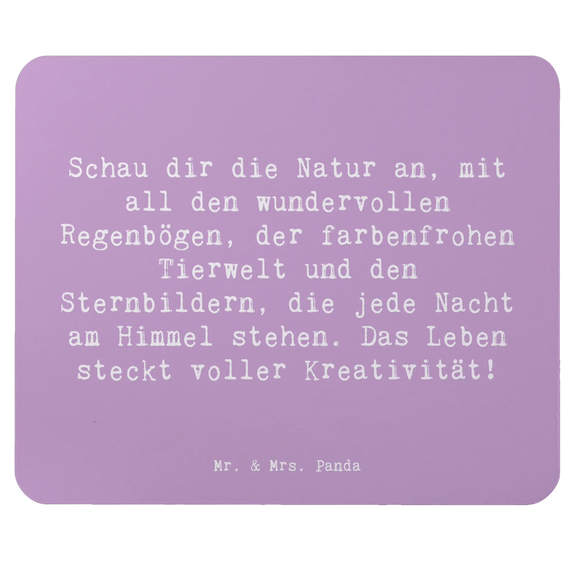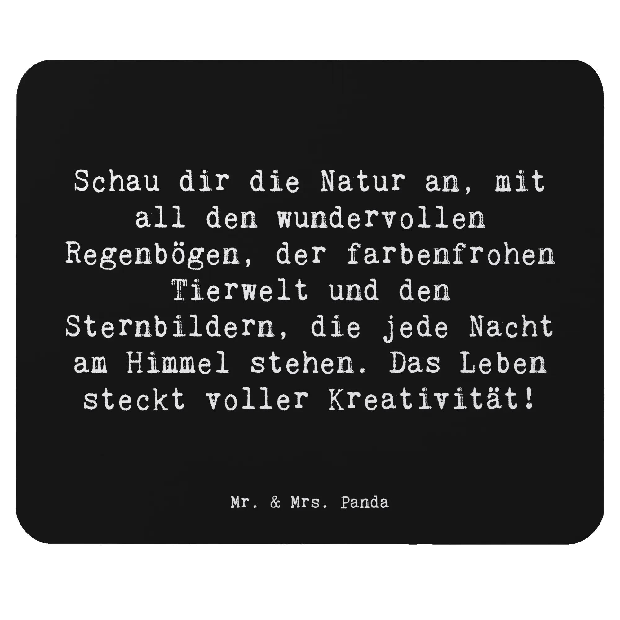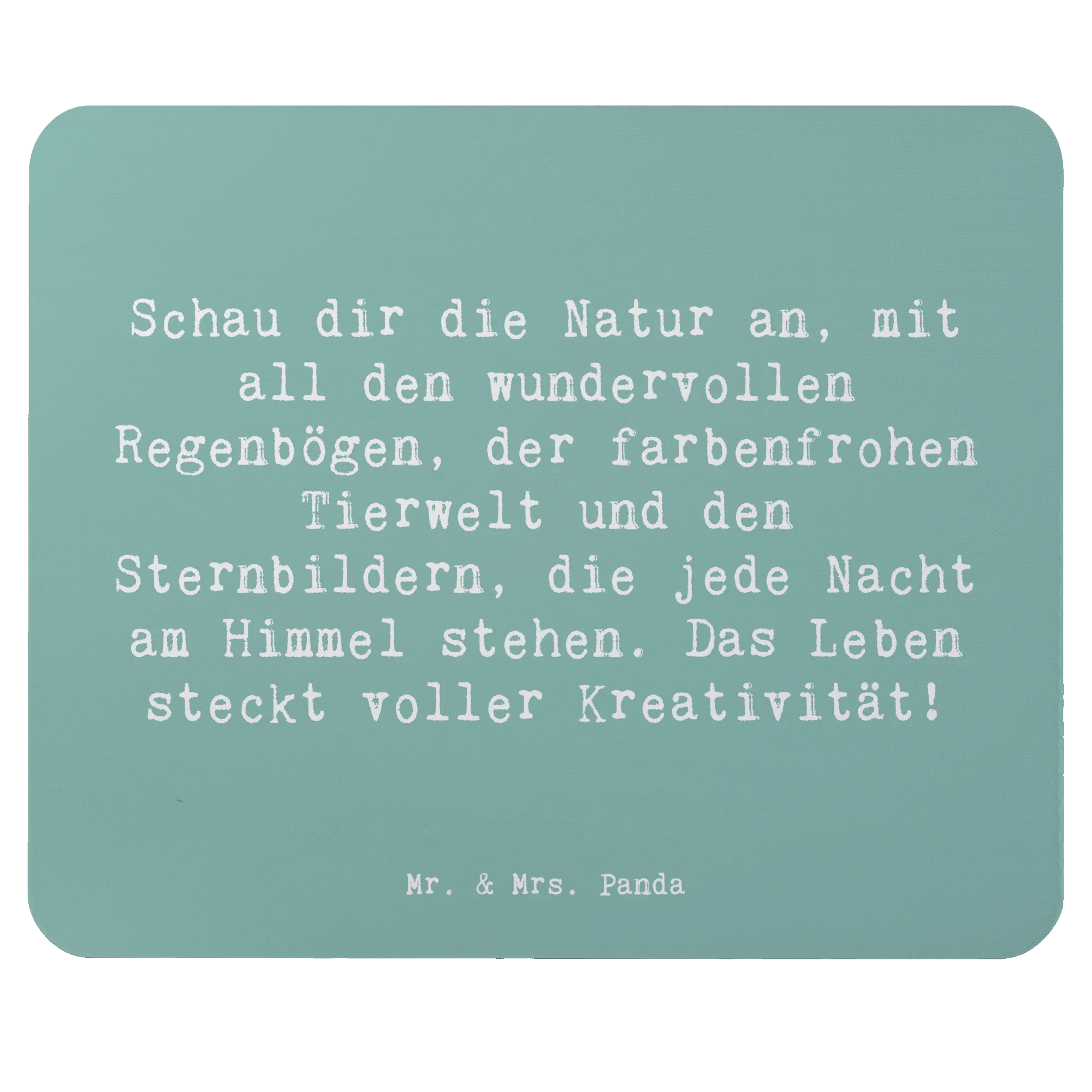 Der besondere Spruch "Schau dir die Natur an, mit all den wundervollen Regenbögen, der farbenfrohen Tierwelt und den Sternbildern, die jede Nacht am Himmel stehen. Das Leben steckt voller Kreativität!" auf diesem Mauspad sorgt dafür, dass du täglich daran erinnert wirst, wie schön und vielfältig das Leben ist. Egal, ob du gerade an einem großen Projekt arbeitest oder einfach nur entspannen möchtest – dieser Spruch wird dich motivieren und inspirieren!