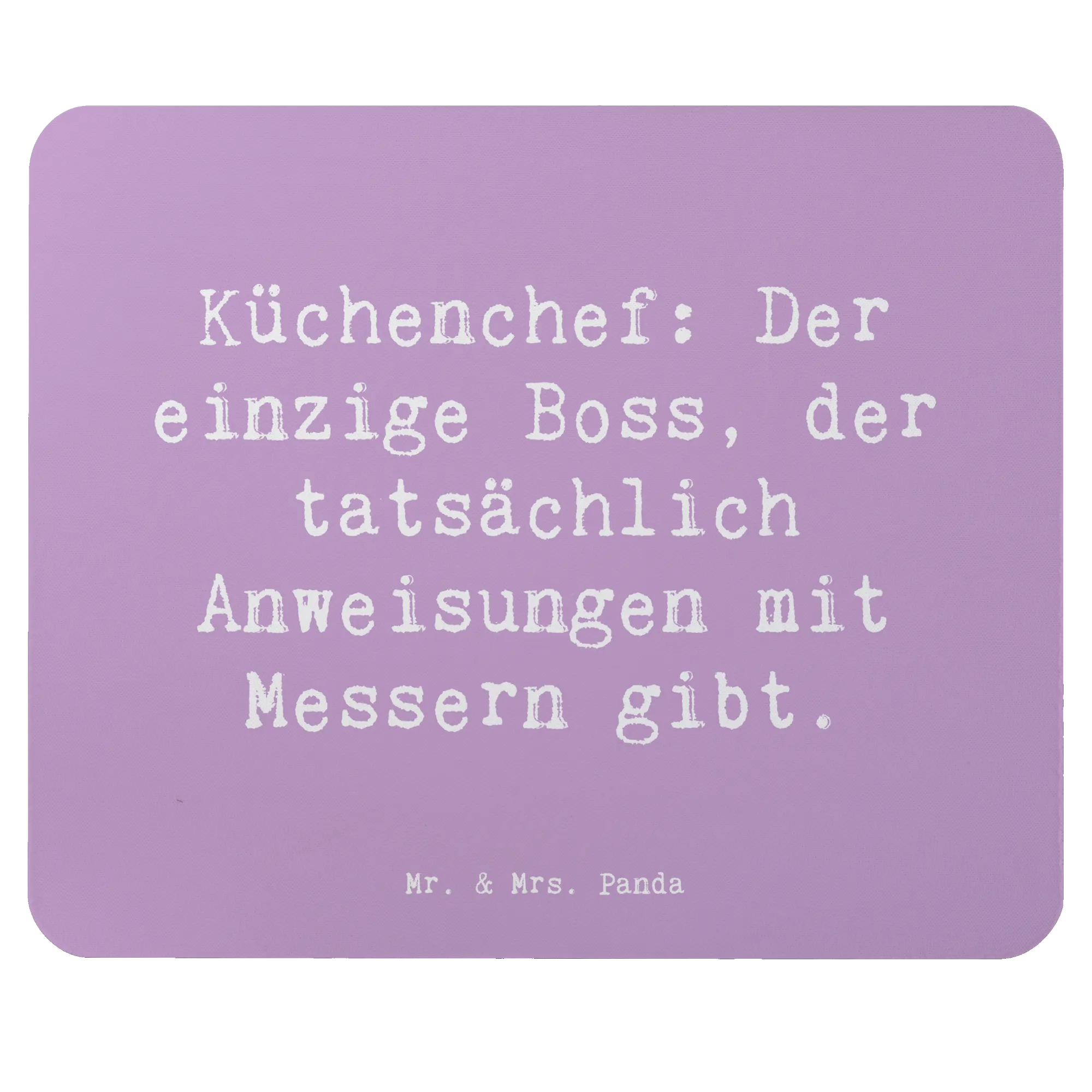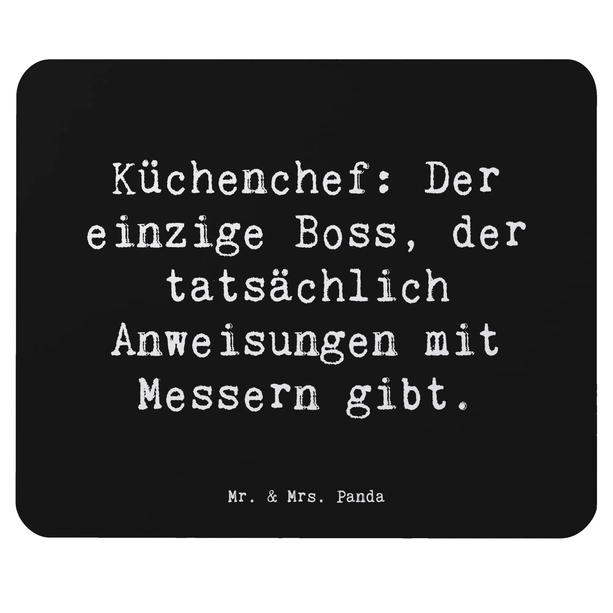 Ein wunderschönes und angenehmes Mauspad von Mr. & Mrs. Panda, das perfekt für alle Küchenchefs unter Euch ist! Mit dem Spruch "Küchenchef: Der einzige Boss, der tatsächlich Anweisungen mit Messern gibt!" bringt es nicht nur Farbe in Euer Homeoffice oder Arbeitszimmer, sondern auch ein Lächeln auf Euer Gesicht. Egal, ob Du selber gerne kochst oder einen leidenschaftlichen Koch als Freund oder Kollegen hast – dieses Mauspad ist das ideale Geschenk für jeden Anlass.
