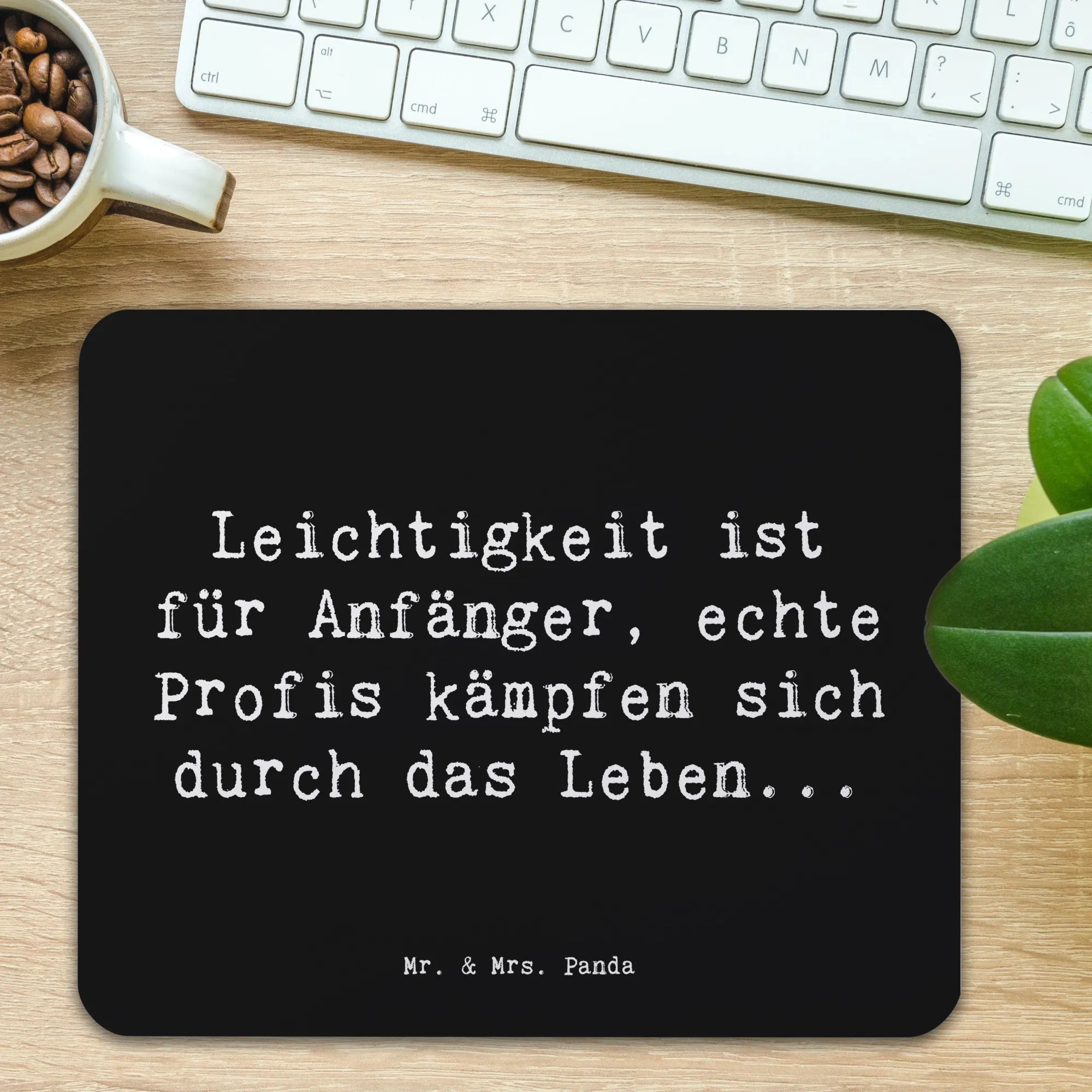 Entdecke das einzigartige Mauspad "Leichtigkeit" aus der Kollektion Gefühle & Stimmungen von Mr. & Mrs. Panda! Dieses wunderschöne und angenehme Mauspad ist nicht nur ein echter Blickfang in deinem Arbeitszimmer oder Homeoffice, sondern es bringt auch einen Hauch von Motivation und Inspiration in deinen Arbeitsalltag. Mit seinem tollen Spruch – "Leichtigkeit ist für Anfänger, echte Profis kämpfen sich durch das Leben..." – erinnert es dich immer daran, auch in stressigen Zeiten Gelassenheit zu bewahren.