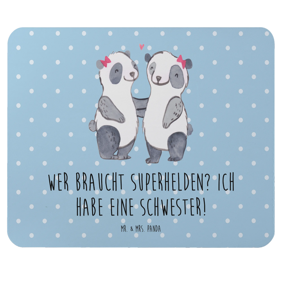 Das bezaubernde Mauspad mit dem Motiv "Wer braucht Superhelden? Ich habe eine Schwester!" von Mr. & Mrs. Panda ist nicht nur ein praktisches PC-Zubehör, sondern auch ein liebevolles Geschenk für Schwestern.