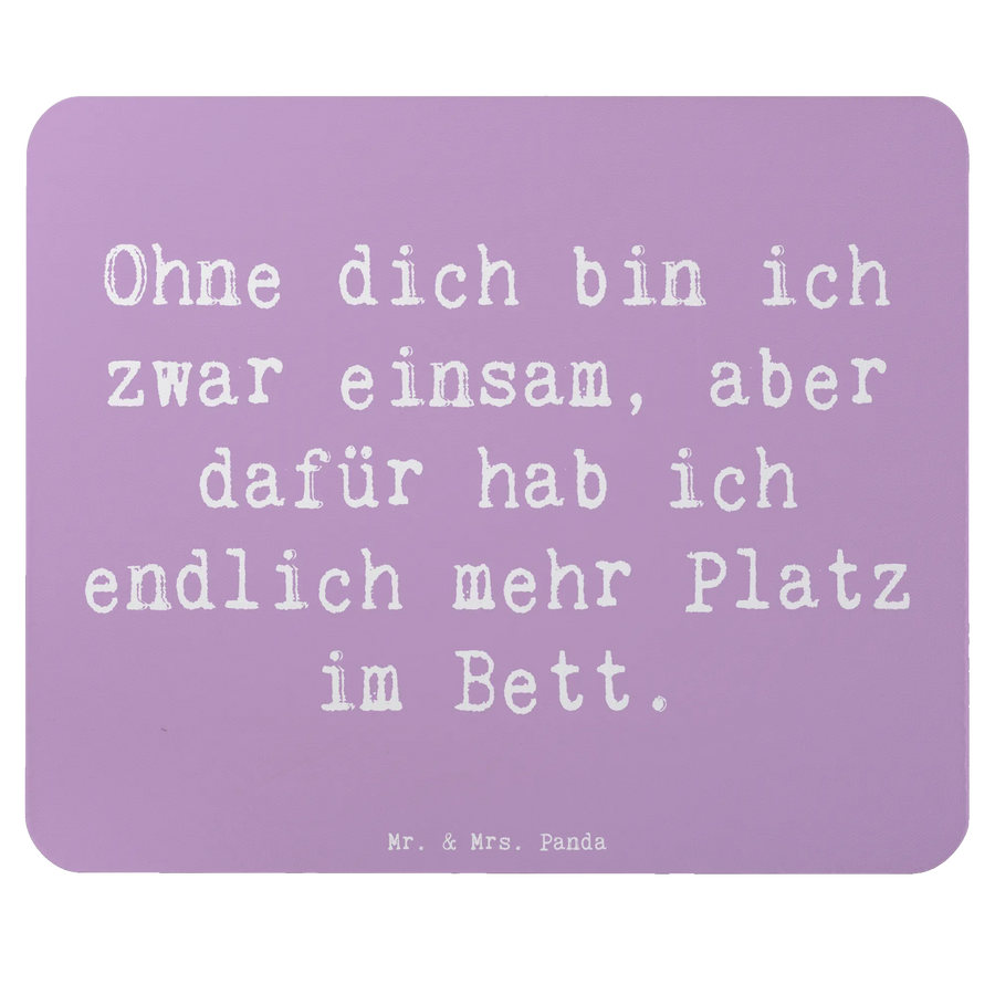 Entdecke das perfekte Mauspad von Mr. & Mrs. Panda für all diejenigen, die gerade eine schwere Zeit durchleben. Das Mauspad mit dem Aufdruck "Ohne dich bin ich zwar einsam, aber dafür hab ich endlich mehr Platz im Bett." ist nicht nur ein praktisches Accessoire für dein Büro oder Homeoffice, sondern bringt auch einen Hauch von Humor und Trost in trübe Zeiten.