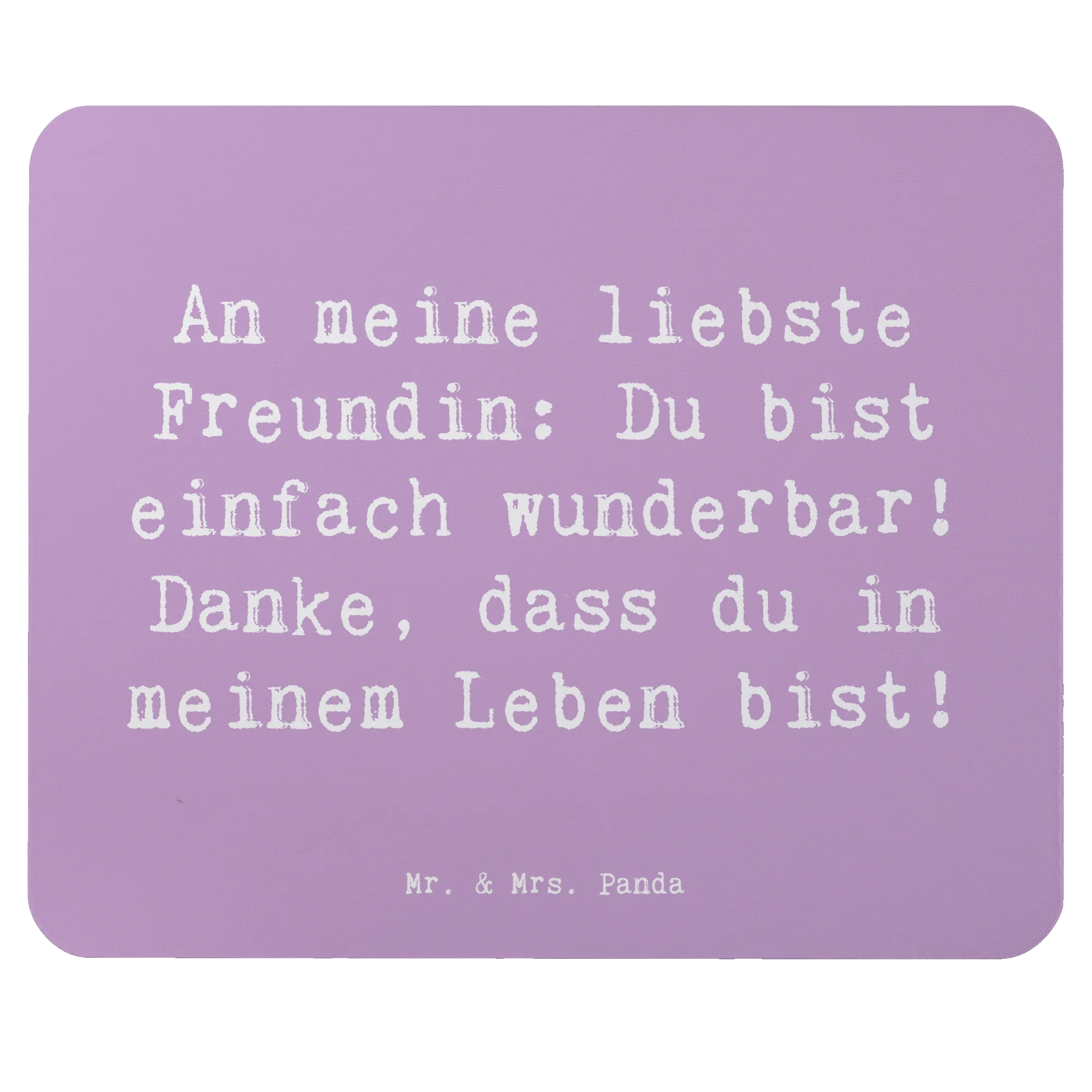 Willst du deiner besten Freundin mal danke sagen? Mit dem einzigartigen Mauspad von Mr. & Mrs. Panda aus der "Danke"-Kollektion gelingt dir das mühelos! Egal ob im Büro oder im Homeoffice, dieses Mauspad hat nicht nur eine angenehme, handgelenkschonende Oberfläche, sondern bringt auch einen liebevollen Spruch mit sich: "An meine liebste Freundin: Du bist einfach wunderbar! Danke, dass du in meinem Leben bist!"