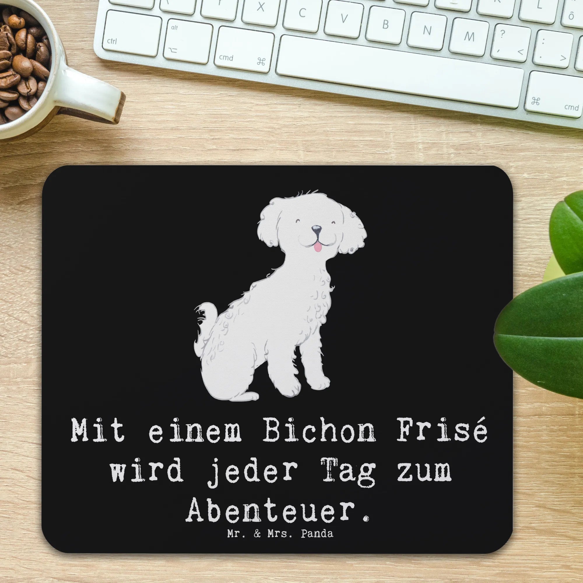 Mauspad Mit einem Bichon Frisé wird jeder Tag zum Abenteuer. - Schwarz