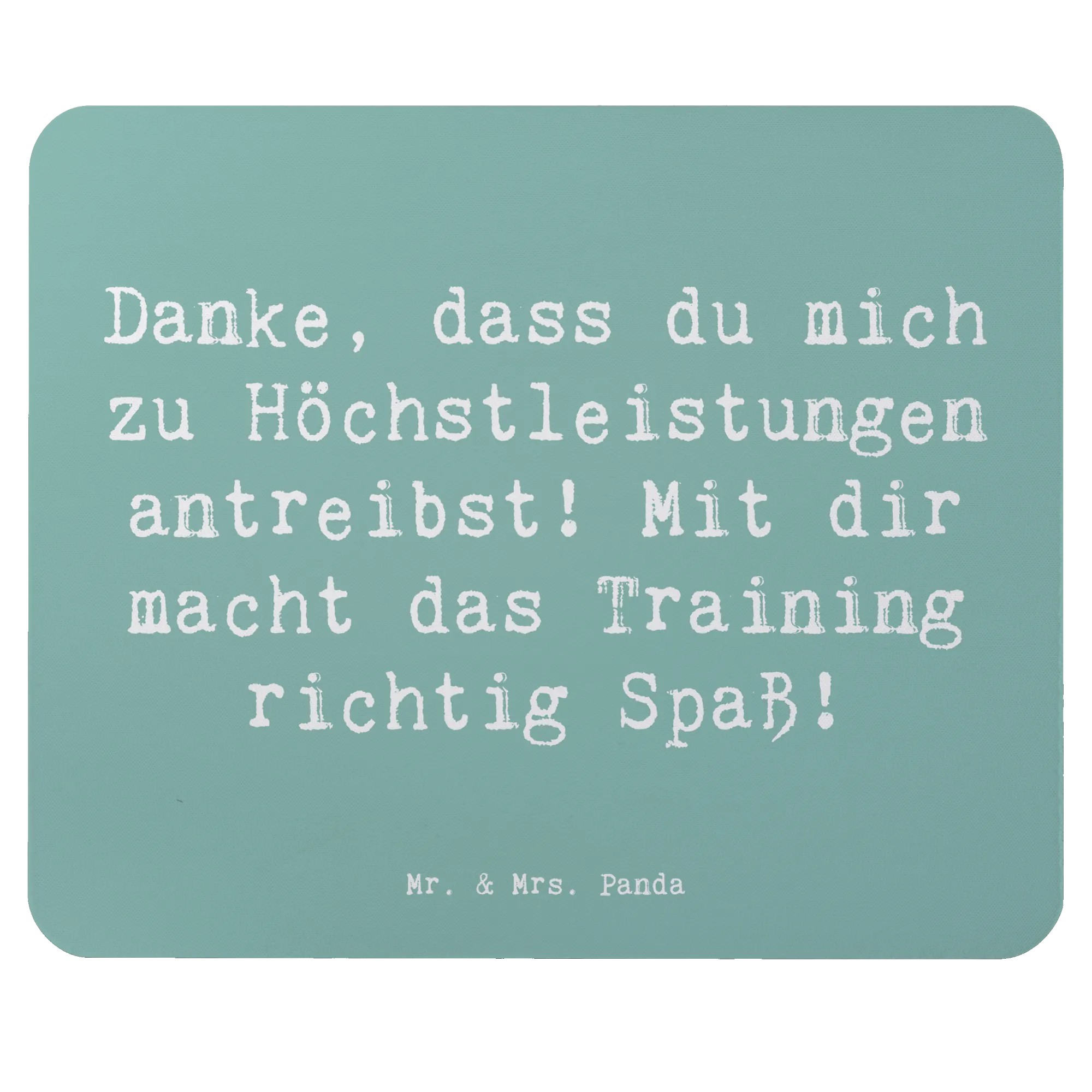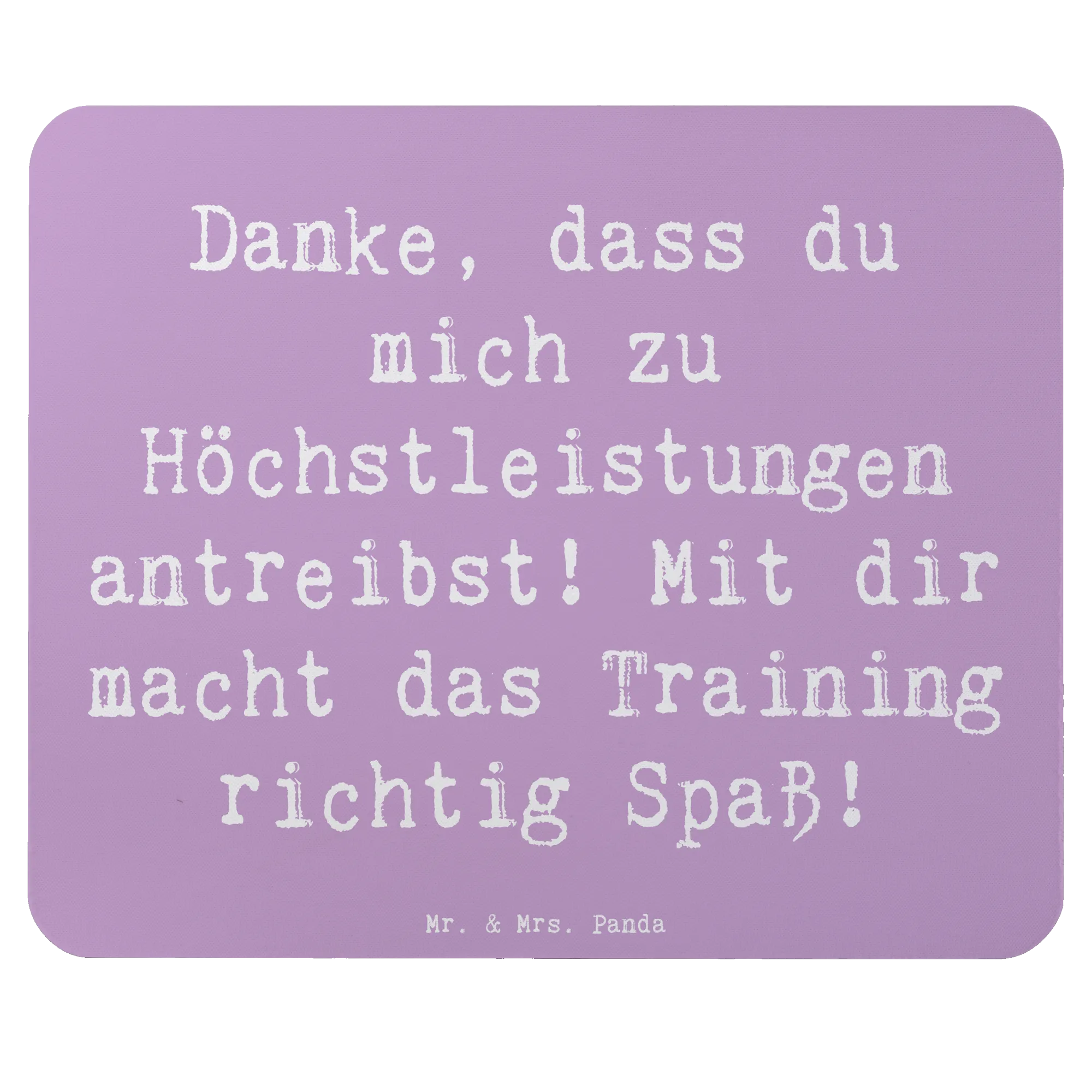Du suchst nach dem perfekten Geschenk für deinen lieben Fitness-Trainer? Dann ist das Mauspad mit dem herzlichen Spruch "Danke, dass du mich zu Höchstleistungen antreibst! Mit dir macht das Training richtig Spaß!" von Mr. & Mrs. Panda genau das Richtige!