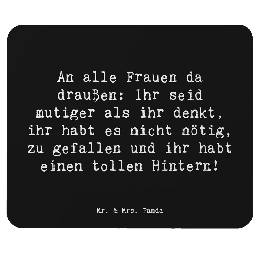 Der Spruch "An alle Frauen da draußen: Ihr seid mutiger als ihr denkt, ihr habt es nicht nötig, zu gefallen und ihr habt einen tollen Hintern!" verleiht dem Mauspad eine besonders motivierende Note. Dieser positive Spruch ermutigt nicht nur zur Selbstliebe, sondern sorgt auch für ein Lächeln während der Arbeit.