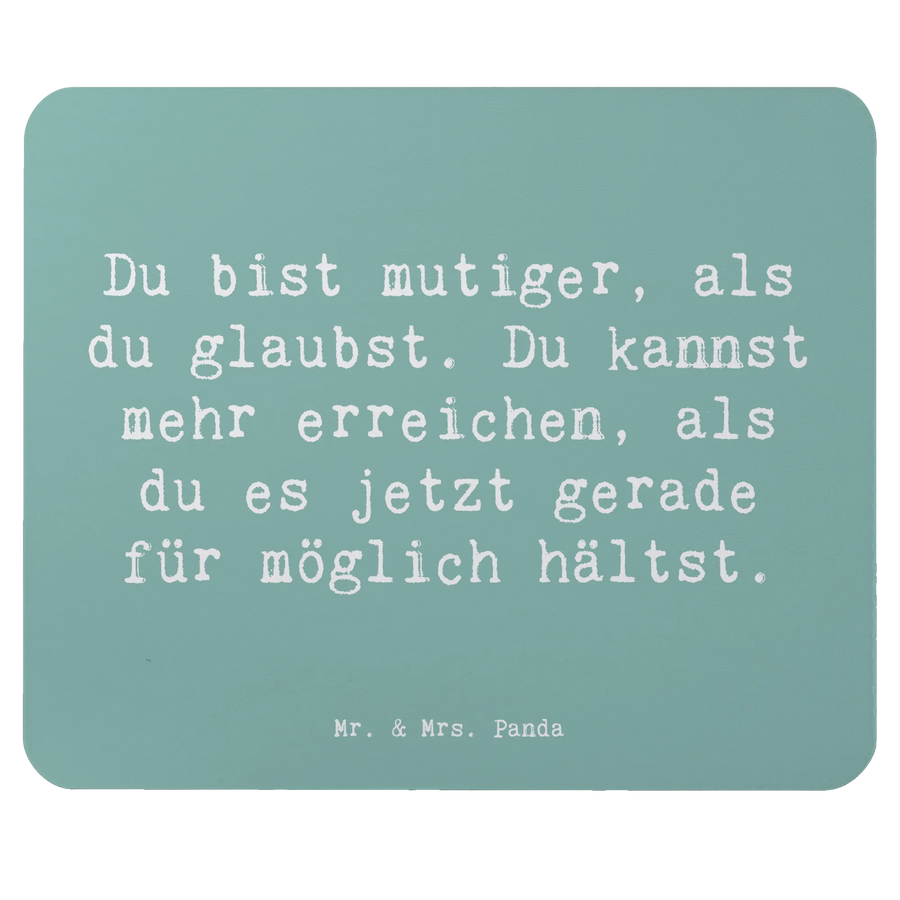 Das Mauspad Tapferkeit von Mr. & Mrs. Panda ist nicht nur ein praktisches Accessoire für dein Büro oder Homeoffice, sondern auch eine tägliche Quelle der Motivation! Mit dem inspirierenden Spruch "Du bist mutiger, als du glaubst. Du kannst mehr erreichen, als du es jetzt gerade für möglich hältst." ist dieses Mauspad ein ständiger Begleiter, der dich daran erinnert, dass du zu Großem fähig bist.