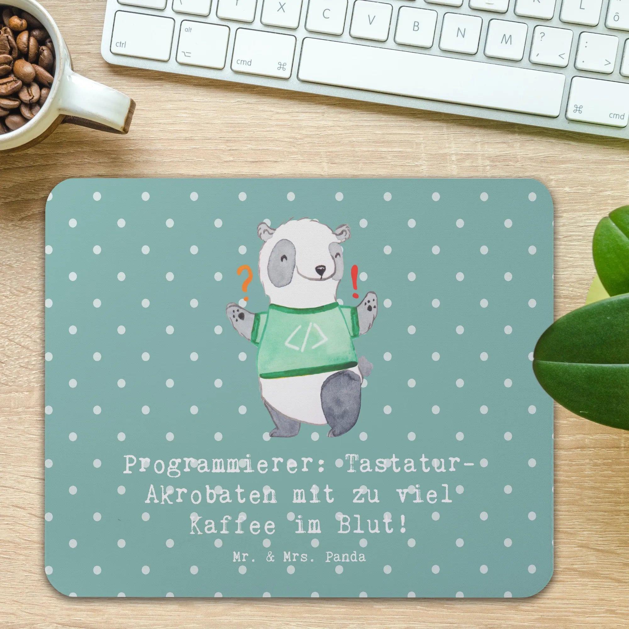 Die Pflege ist super unkompliziert – einfach mit einem feuchten Tuch abwischbar. Mit seinen abriebfesten und feuchtigkeitsabweisenden Eigenschaften bleibt das Mauspad lange in hervorragendem Zustand. Überrasche einen Programmierer in Deinem Leben und mache ihm eine Freude mit diesem einzigartigen Mauspad aus der Berufe Kollektion von Mr. & Mrs. Panda. Es ist mehr als nur ein Mauspad; es ist ein Zeichen der Wertschätzung für die Arbeit, die Programmierer täglich leisten, und ein tolles Stück, das jeden Schreibtisch zum Strahlen bringt!