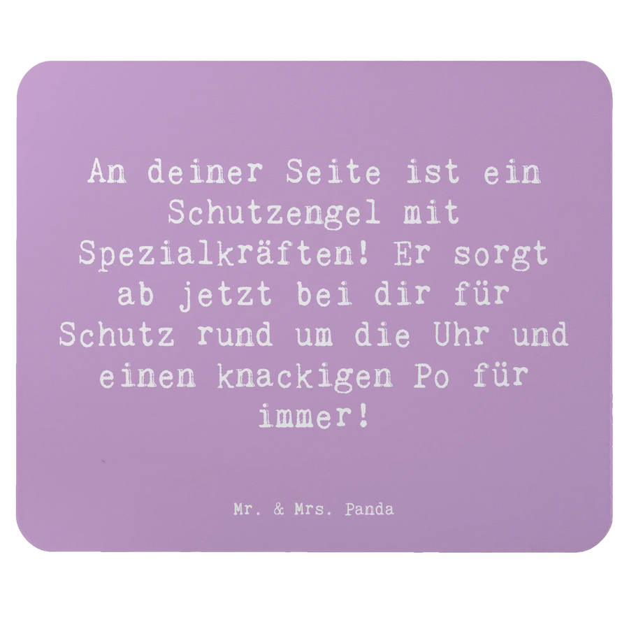 Das Mauspad "Schutz" von Mr. & Mrs. Panda ist das perfekte Geschenk für alle, die ihren Arbeitsplatz im Homeoffice oder im Büro aufpeppen möchten. Mit seinem liebevollen Spruch "An deiner Seite ist ein Schutzengel mit Spezialkräften! Er sorgt ab jetzt bei dir für Schutz rund um die Uhr und einen knackigen Po für immer!" verbreitet es ein Gefühl von Sicherheit und Motivation.