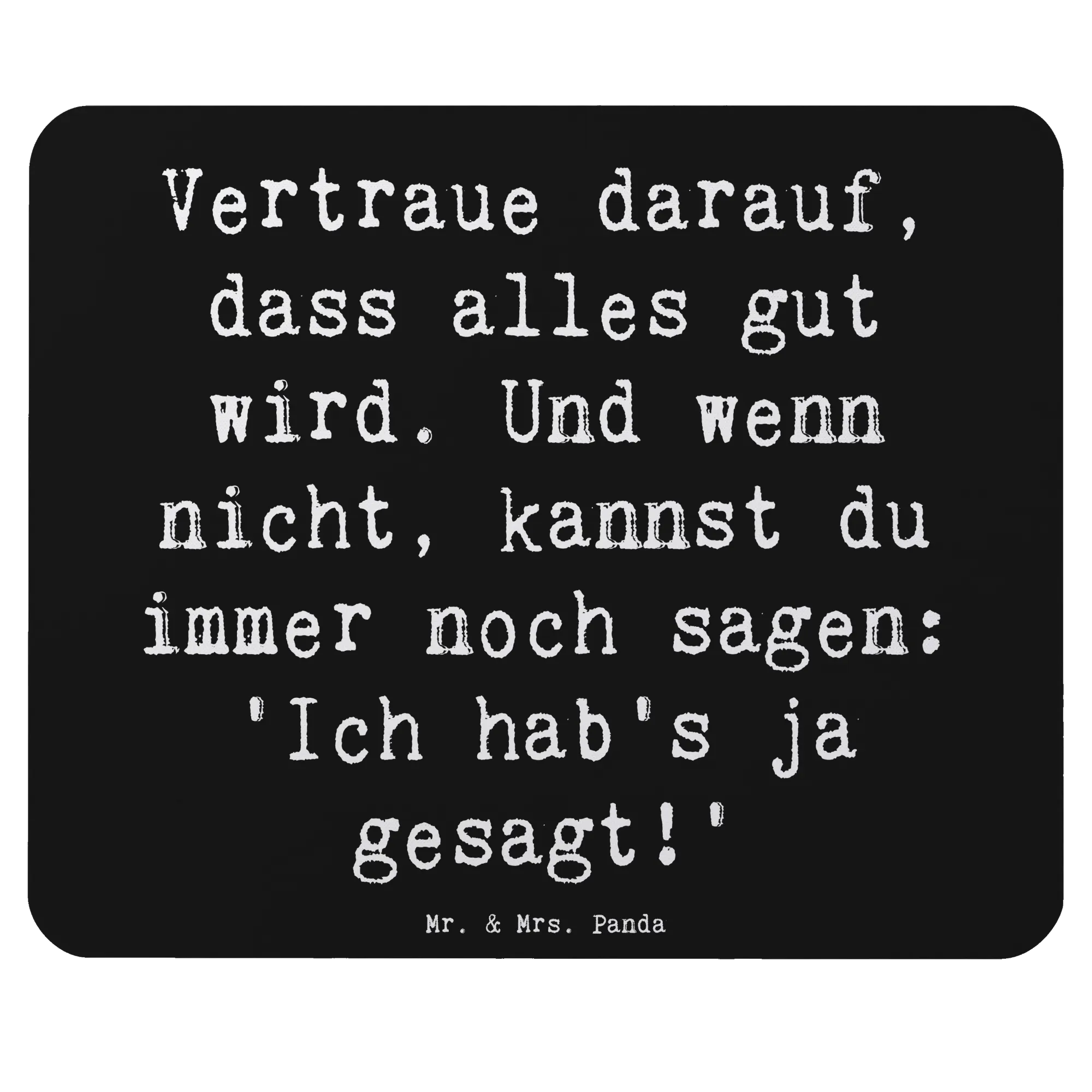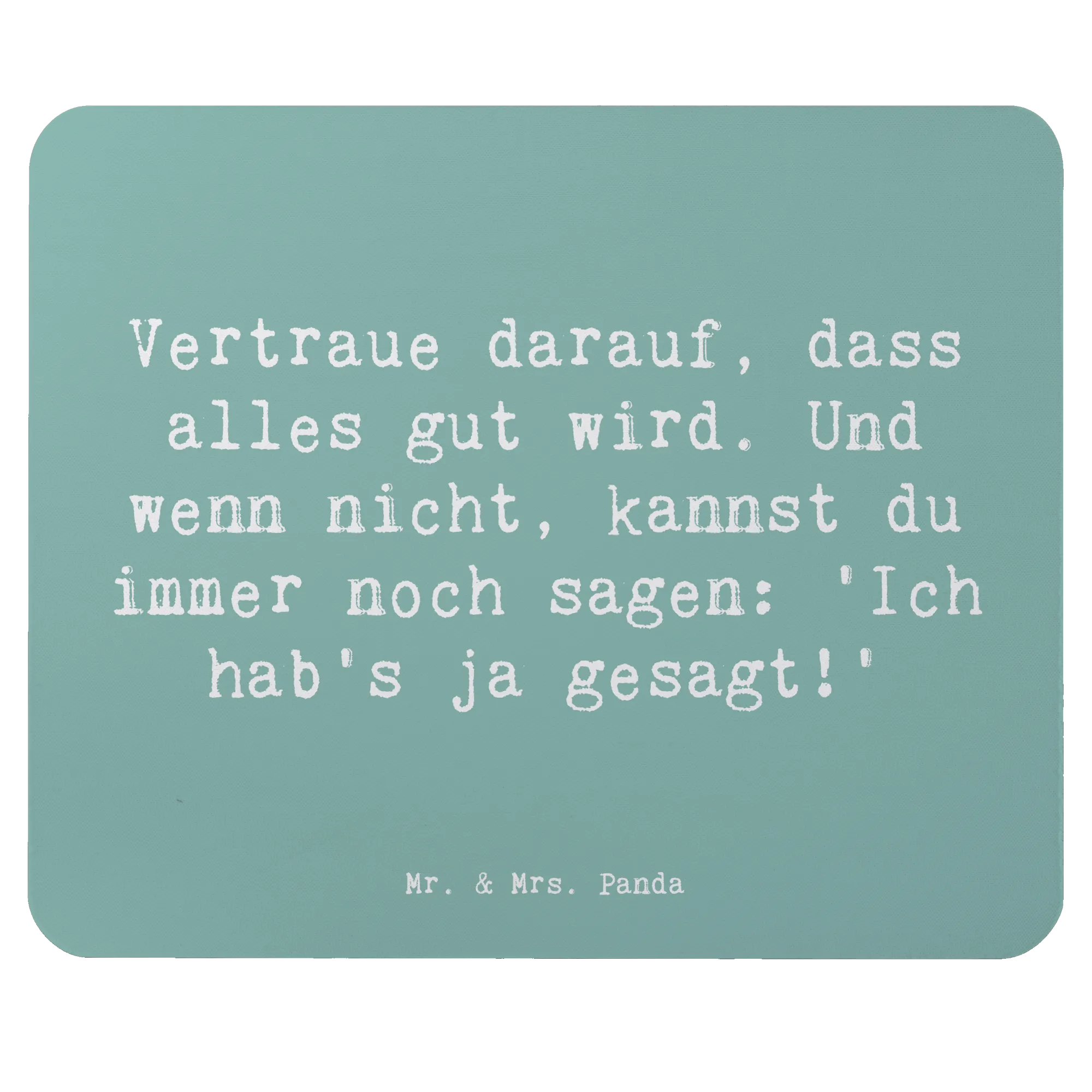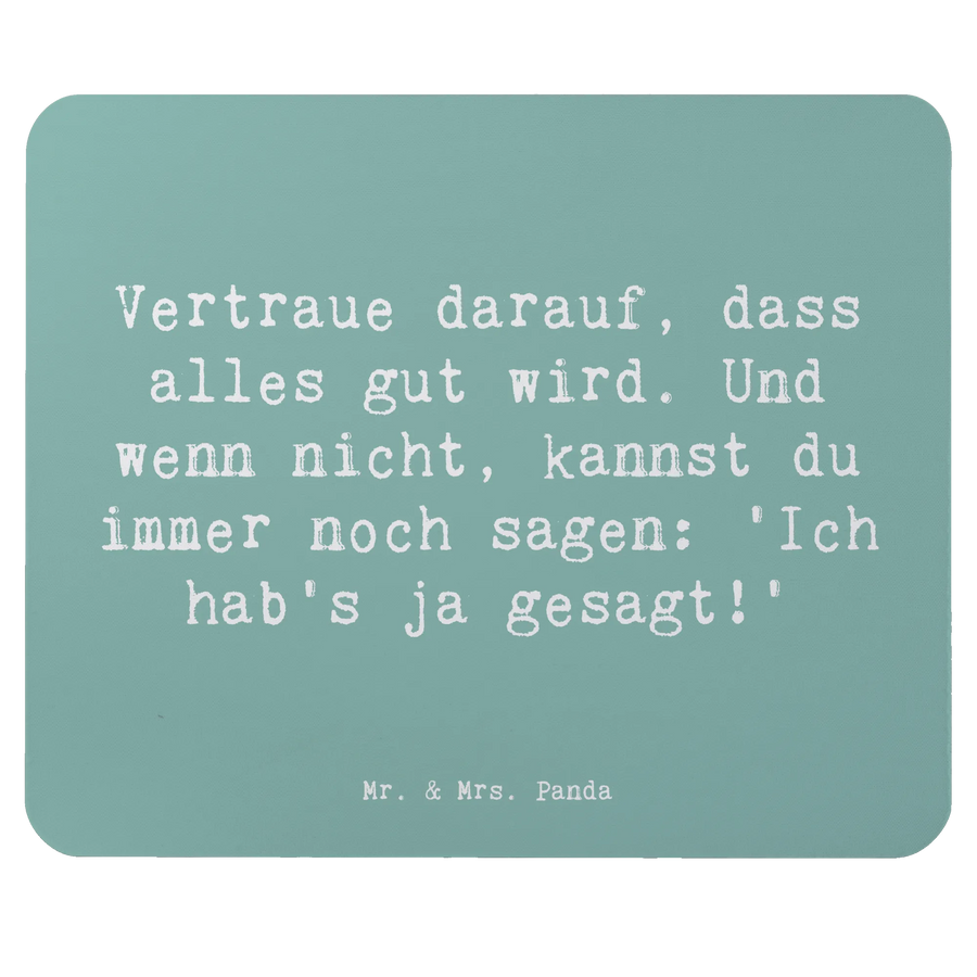 Der Spruch „Vertraue darauf, dass alles gut wird. Und wenn nicht, kannst du immer noch sagen: 'Ich hab's ja gesagt!'“ gibt Dir jeden Tag die Motivation, die Du brauchst, um voller Zuversicht an Deine Aufgaben zu gehen. Dank dieses inspirierenden Spruchs bringt das Mauspad nicht nur Farbe, sondern auch eine positive Stimmung an Deinen Arbeitsplatz und sorgt für gute Laune beim Arbeiten.