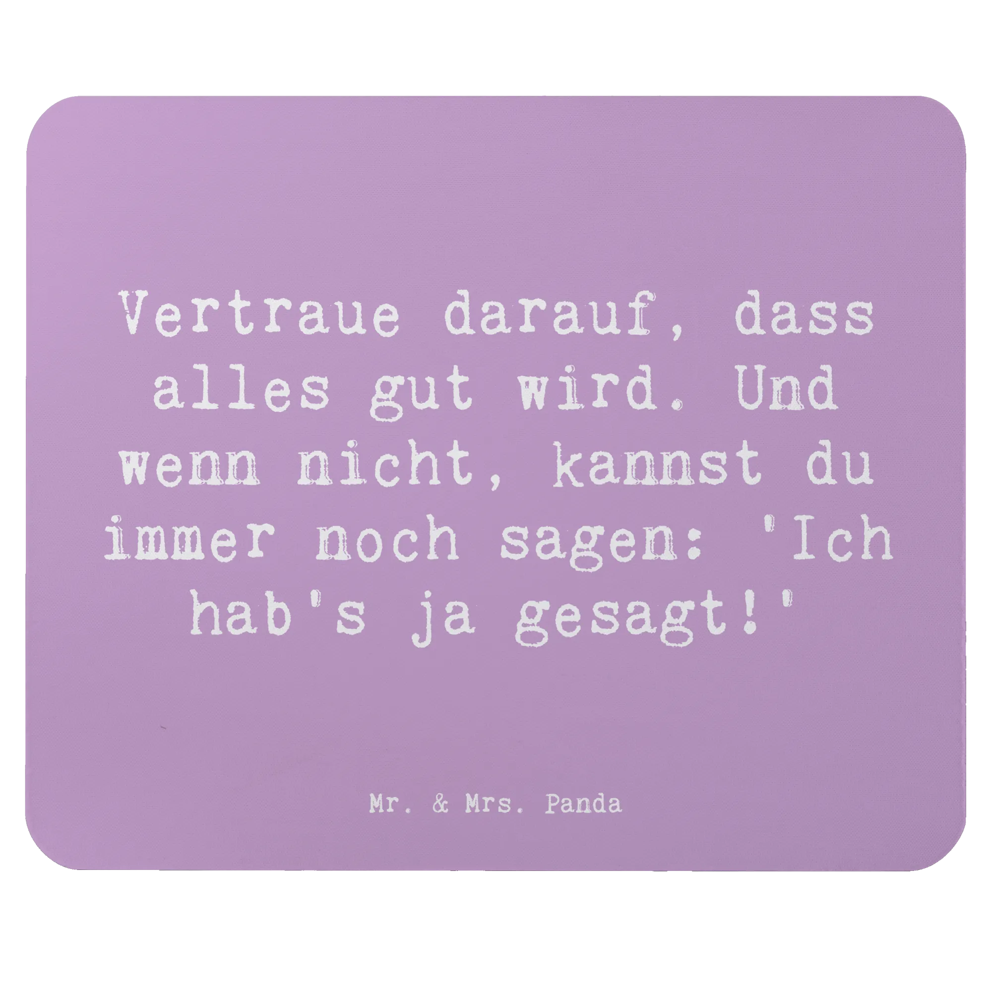 Ein wunderschönes und angenehmes Mauspad von Mr. & Mrs. Panda, das in jedem Büro oder Homeoffice eine gute Figur macht! Mit seiner hübschen Lavendeltraum-Farbe und dem motivierenden Spruch "Vertraue darauf, dass alles gut wird. Und wenn nicht, kannst du immer noch sagen: 'Ich hab's ja gesagt!'" ist dieses Mauspad nicht nur praktisch, sondern auch eine kleine Quelle der Inspiration.