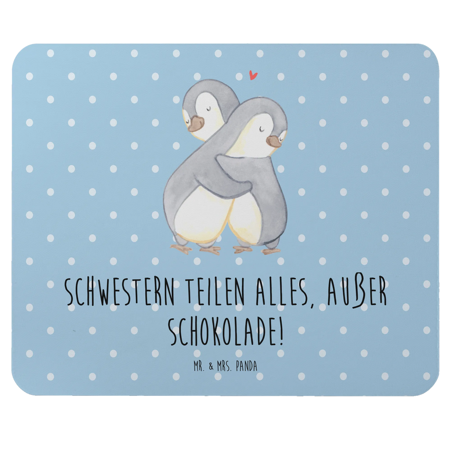 Suchst du das perfekte Geschenk für deine Schwester oder möchtest du einfach dein eigenes Arbeitszimmer aufpeppen? Dann ist das Mauspad "Schwestern teilen alles, außer Schokolade!" von Mr. & Mrs. Panda genau das richtige für dich! Dieses einzigartige und liebevoll gestaltete Mauspad gehört zur charmanten Kollektion "Familie & Verwandte" und feiert die besondere Verbindung zwischen Geschwistern.