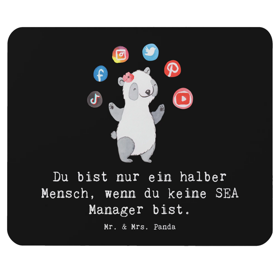 Das Mauspad SEA Manager mit Herz von Mr. & Mrs. Panda ist das ideale Geschenk für alle SEA Manager, die ihre Leidenschaft für Suchmaschinenmarketing (SEM) und Suchmaschinenwerbung (SEA) täglich in ihrem Beruf leben. Mit dem liebevoll gestalteten Motiv, das einen süßen Panda zeigt, der mit Social Media Icons jongliert, bringt dieses Mauspad nicht nur Farbe in jeden Arbeitsplatz, sondern auch ein Lächeln in den Arbeitsalltag. Es ist ein perfektes Geschenk zum Jobbeginn, zur Beförderung oder einfach als Dankeschön für hervorragende Leistungen. Durch den humorvollen Spruch 'Du bist nur ein halber Mensch, wenn du keine SEA Manager bist' wird der professionelle Kontext auf spielerische Art hervorgehoben und sorgt für gute Laune bei jedem Gebrauch.