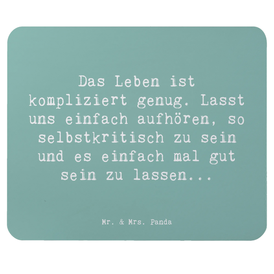 Das Mauspad "Selbstzweifel" aus der Kollektion Gefühle & Stimmungen von Mr. & Mrs. Panda ist der perfekte Begleiter für dein Homeoffice oder deinen Arbeitsplatz. Es strahlt nicht nur Stil, sondern auch eine besondere Botschaft aus. Mit dem Slogan "Das Leben ist kompliziert genug. Lasst uns einfach aufhören, so selbstkritisch zu sein und es einfach mal gut sein zu lassen..." schafft es eine positive Stimmung, während du am Computer arbeitest.