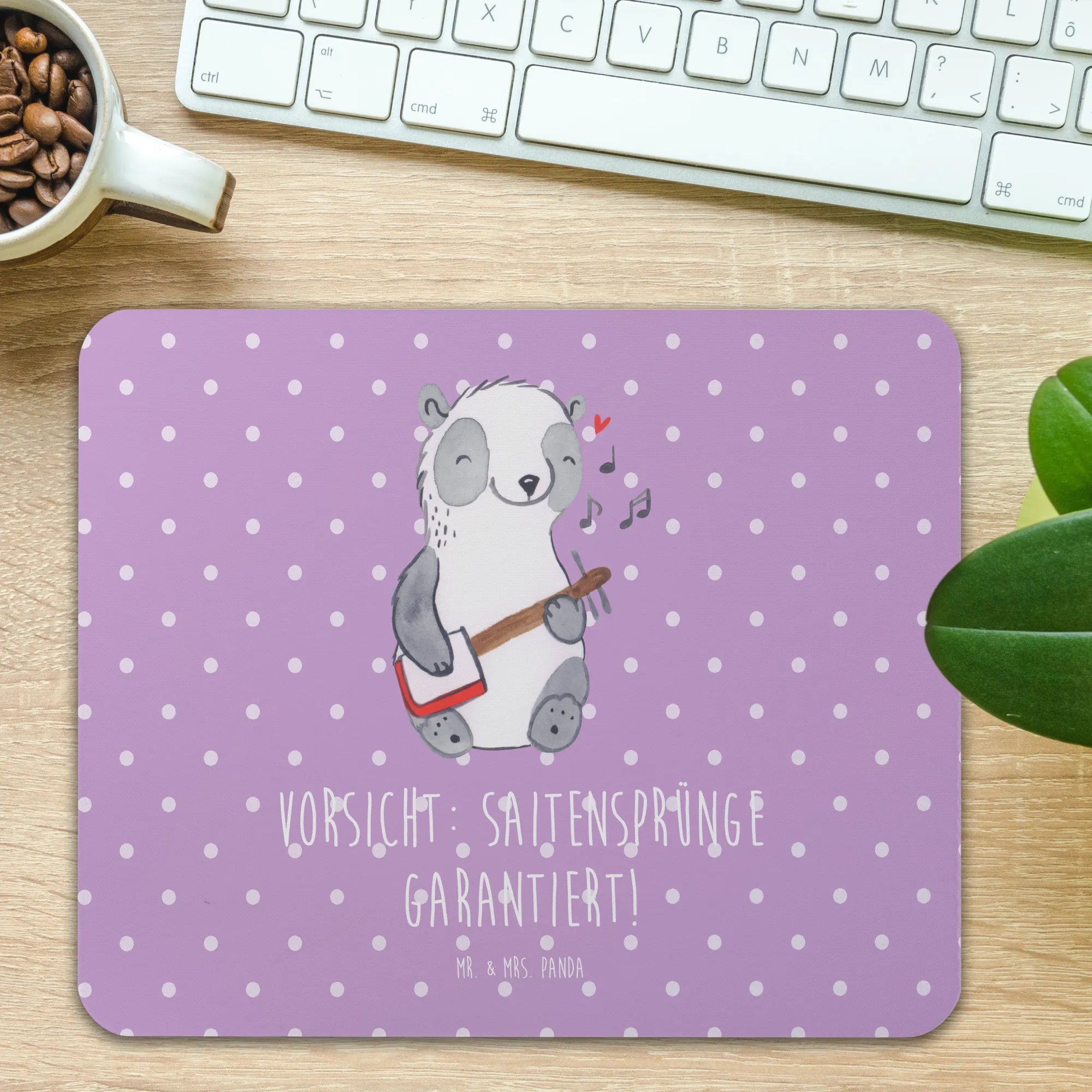 Dieses wunderschöne Mauspad von Mr. & Mrs. Panda wird nicht nur für ein stylisches Arbeitszimmer sorgen, sondern bringt auch ein Stück japanische Tradition in Deinen Büroalltag. Mit einem Slogan, der sagt: "Vorsicht: Saitensprünge garantiert!", ist es sowohl ein praktisches Accessoire als auch ein liebevolles Statement für Musikliebhaber.
