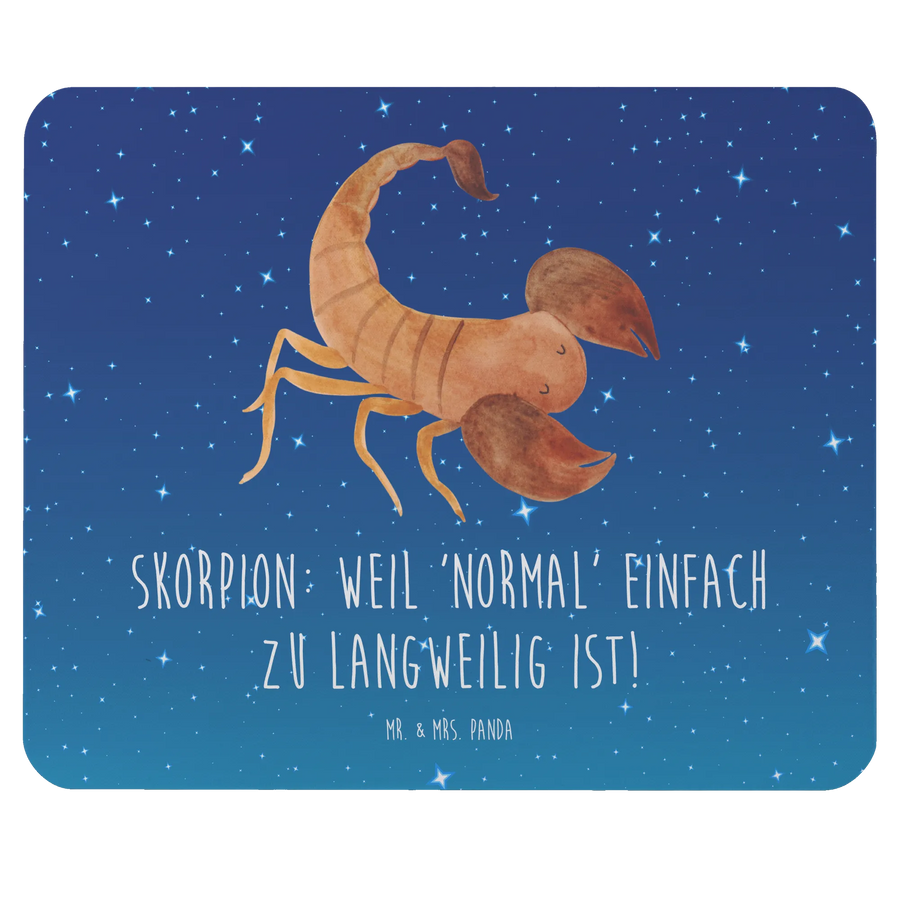 Das perfekte Geschenk für alle Skorpione! Das Mauspad mit dem einzigartigen Skorpion-Motiv von Mr. & Mrs. Panda ist mehr als nur ein praktisches Stück Computerzubehör – es ist eine Hommage an die besonderen Eigenschaften und das faszinierende Wesen deines Sternzeichens. Handgezeichnet mit viel Liebe und Kreativität, bringt dieses Mauspad Farbe und Lebensfreude in dein Arbeitszimmer und sorgt für ein angenehmes Ambiente im Homeoffice. Mit einem freundlichen Spruch "Skorpion: Weil 'normal' einfach zu langweilig ist!" wird jeder Arbeitstag zu einem kleinen Abenteuer.
