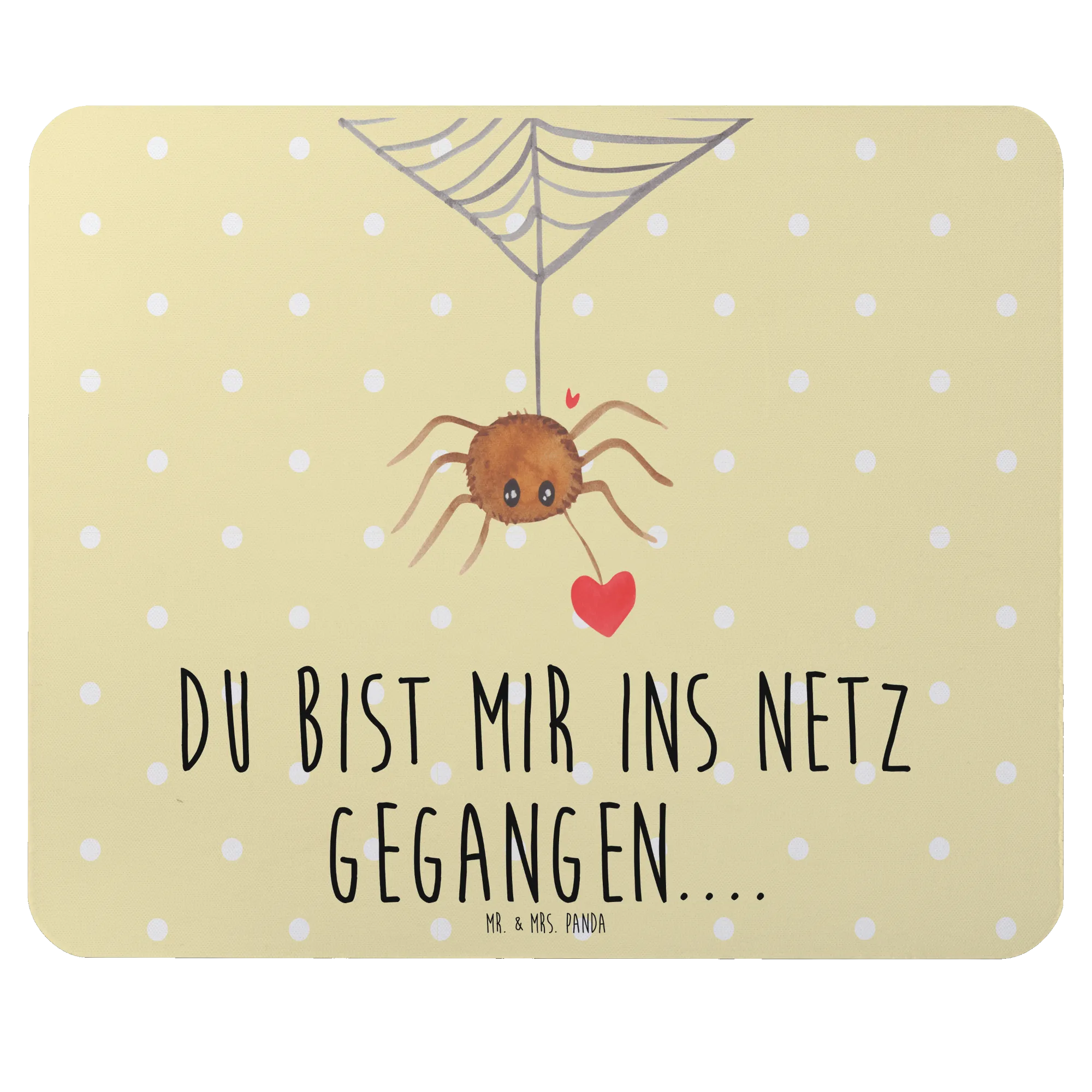 Entdecke das bezaubernde Mauspad Spinne Agathe Liebe von Mr. & Mrs. Panda – ein einzigartiges Geschenk für all jene, die das Besondere im Alltag lieben! Mit ihrem niedlichen Design und dem liebevollen Spruch 'Du bist mir ins Netz gegangen....' wird Agathe, die süße Spinne, nicht nur auf Deinem Schreibtisch eine gute Figur machen, sondern auch Herzen erwärmen.