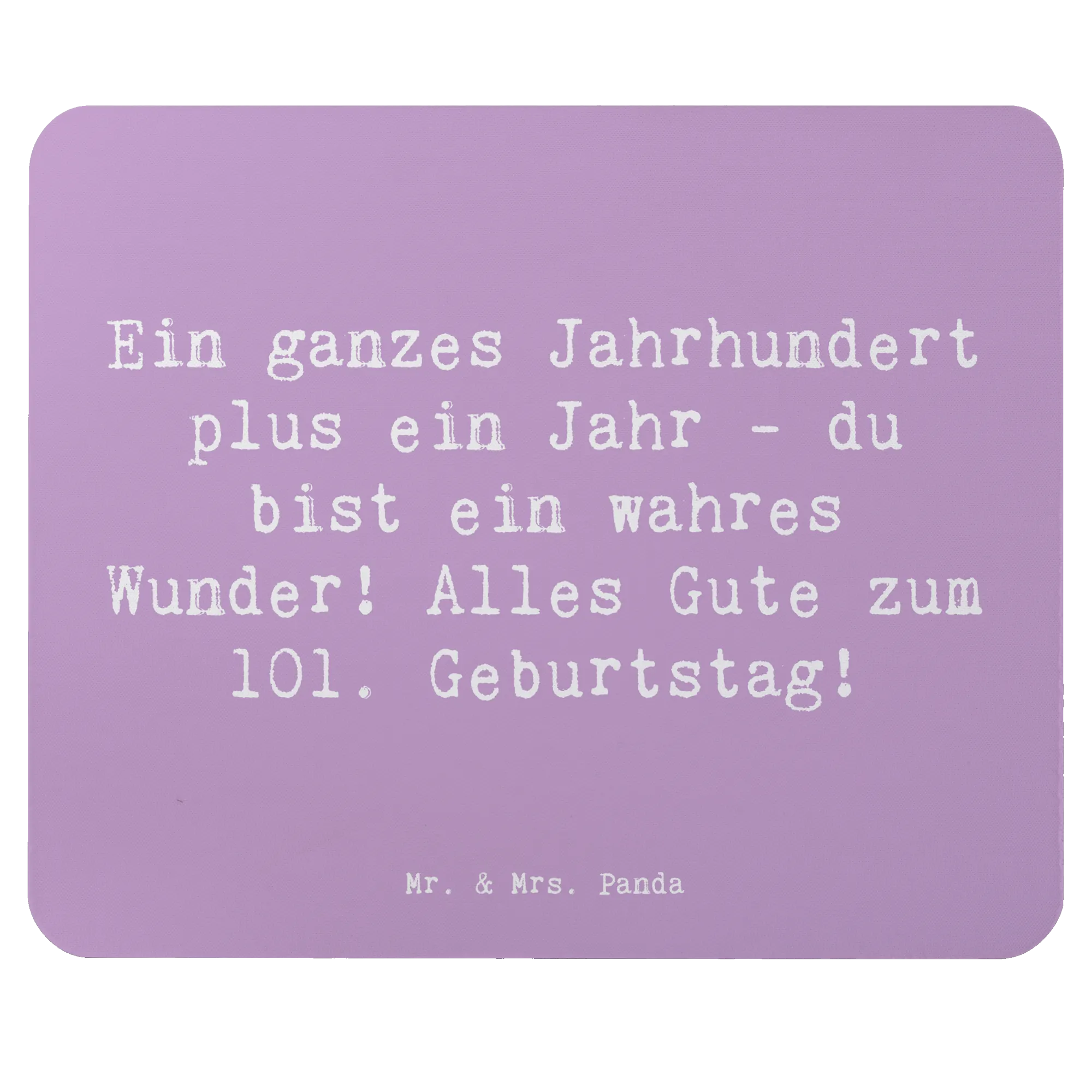 Suchst du ein ganz besonderes Geschenk zum 101. Geburtstag? Dann ist das Mauspad "Ein ganzes Jahrhundert plus ein Jahr - du bist ein wahres Wunder! Alles Gute zum 101. Geburtstag!" von Mr. & Mrs. Panda genau das Richtige für dich! Damit machst du nicht nur das Büro, sondern auch das Homeoffice zu einem ganz besonderen Ort. Auf diesem einzigartigen Mauspad ist der Spruch liebevoll gestaltet und bringt mit Sicherheit ein Lächeln auf die Lippen des Beschenkten!