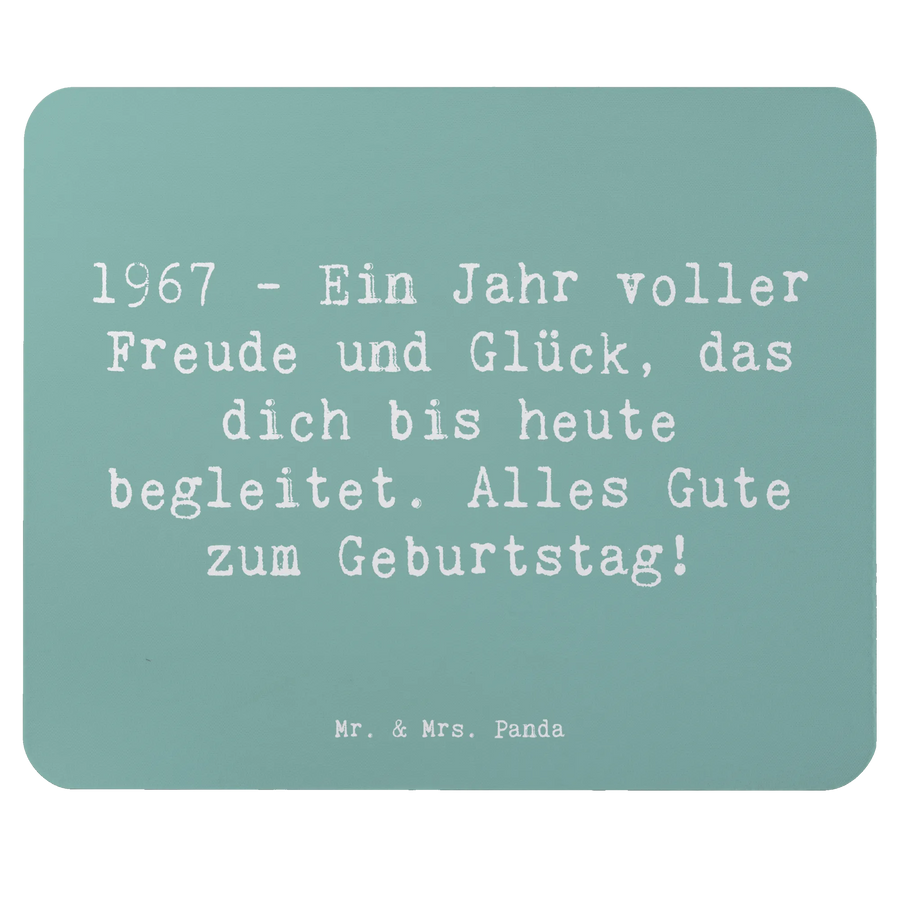 Pflegeleicht und langlebig, kannst du das Mauspad ganz einfach mit einem feuchten Tuch abwischen und es bleibt stets in einem top Zustand. Mit seiner Abriebfestigkeit und der feuchtigkeitsabweisenden Eigenschaften ist es perfekt für den Alltag und hält auch intensiver Nutzung stand. Das 1967 Geburtstag Mauspad von Mr. & Mrs. Panda ist mehr als nur ein praktisches Accessoire – es ist ein echter Blickfang und ein persönliches Geschenk, das begeistert!