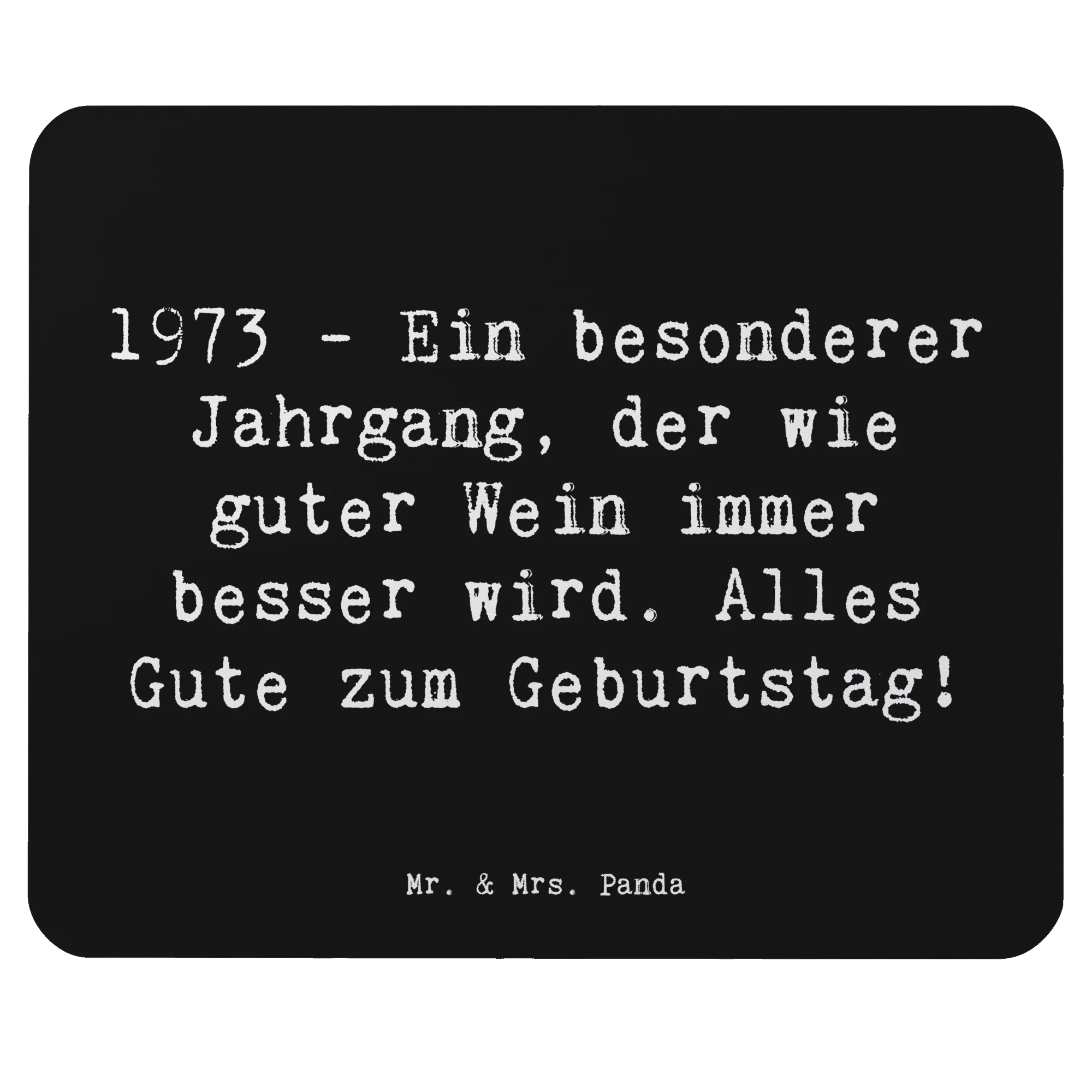 Das Mauspad 1973 Geburtstag von Mr. & Mrs. Panda ist das perfekte Geschenk für alle, die im Jahr 1973 das Licht der Welt erblickt haben! Mit einem liebevollen Design, das mit dem Slogan "1973 - Ein besonderer Jahrgang, der wie guter Wein immer besser wird. Alles Gute zum Geburtstag!" verziert ist, bringt dieses Mauspad Freude und ein Lächeln in jeden Arbeitsalltag. Egal, ob du ein passendes Geburtstagsgeschenk für Freunde, Geschwister oder vielleicht sogar für dich selbst suchst – dieses stilvolle Mauspad ist ein Highlight in jedem Büro oder Homeoffice.