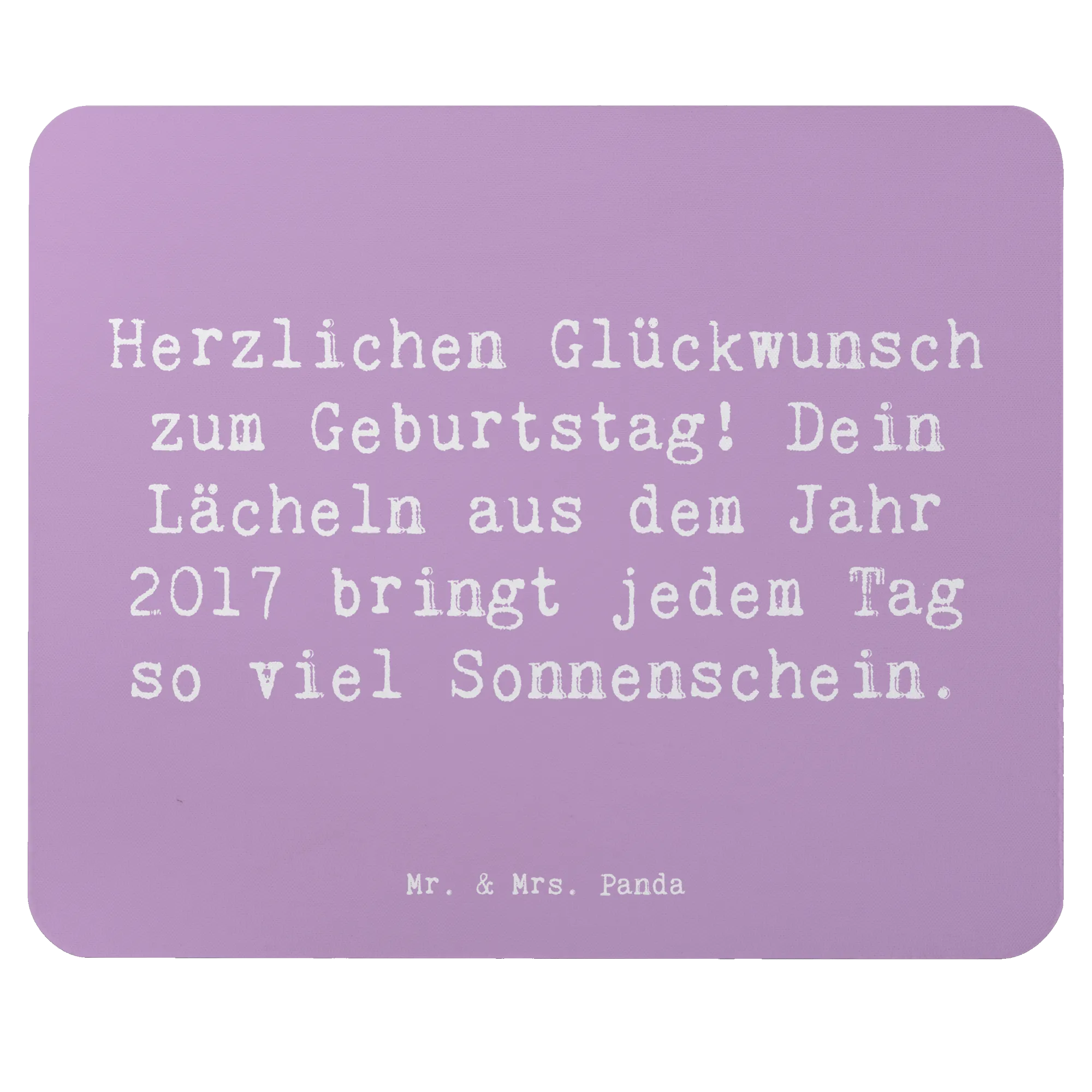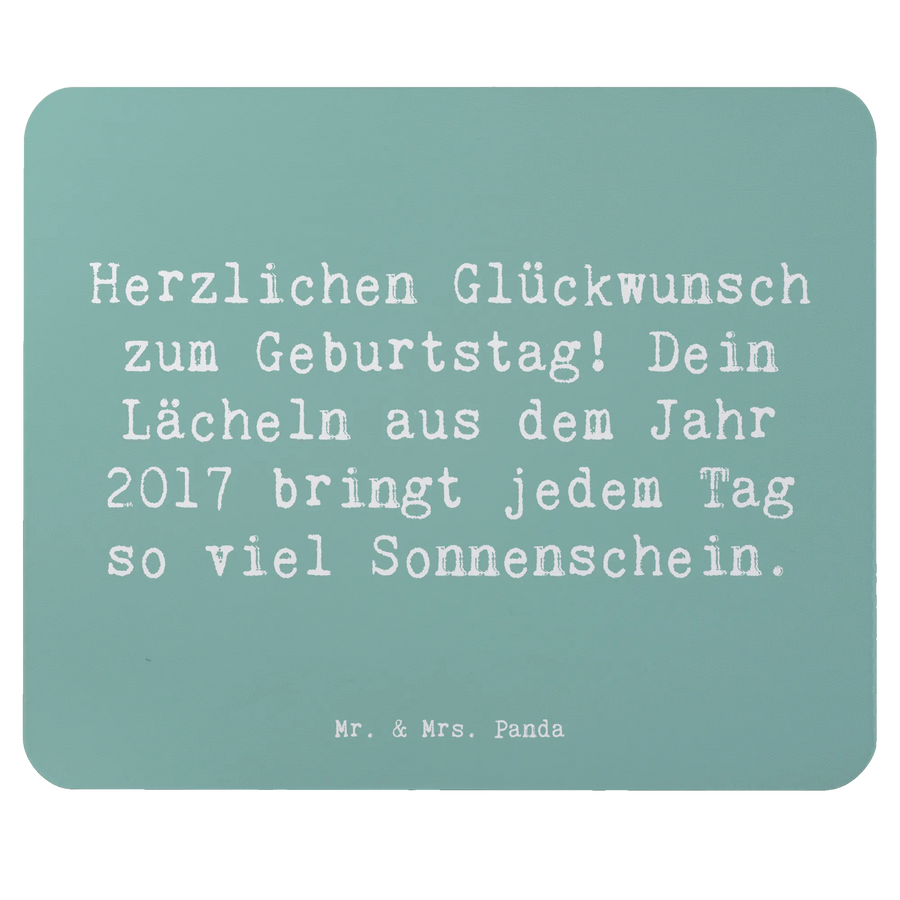 Das wunderschöne Mauspad aus der Mr. & Mrs. Panda Kollektion Geburtstag Geburtsjahr ist das perfekte Geschenk für all jene, die 2017 geboren wurden und ihren Geburtstag besonders feiern möchten! Mit dem herzlichen Slogan: „Herzlichen Glückwunsch zum Geburtstag! Dein Lächeln aus dem Jahr 2017 bringt jedem Tag so viel Sonnenschein.“ ist dieses Mauspad nicht nur ein praktisches Utensil für den Arbeitsplatz oder das Homeoffice, sondern auch ein wunderbares Erinnerungsstück, das jeden Tag ein Lächeln zaubert.