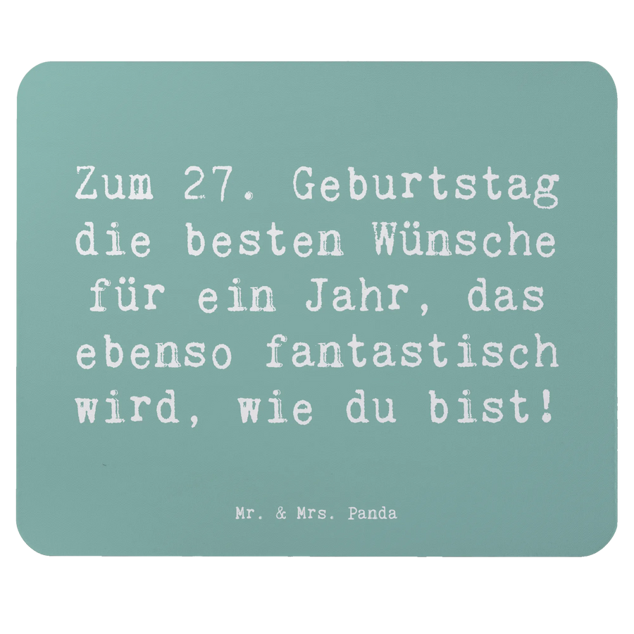 Das Mauspad "Zum 27. Geburtstag die besten Wünsche für ein Jahr, das ebenso fantastisch wird, wie du bist!" von Mr. & Mrs. Panda ist das perfekte Geschenk für all jene, die ihren 27. Geburtstag gebührend feiern möchten. Dieses niedliche und stylische Mauspad vereint Funktionalität und Ästhetik und ist ideal für das Homeoffice, das Büro oder als schickes Gadget für den Computer. Die hochwertigen Materialien des Mauspads sorgen für einen hohen Komfort während der Arbeit, und das rutschfeste Design garantiert Stabilität.