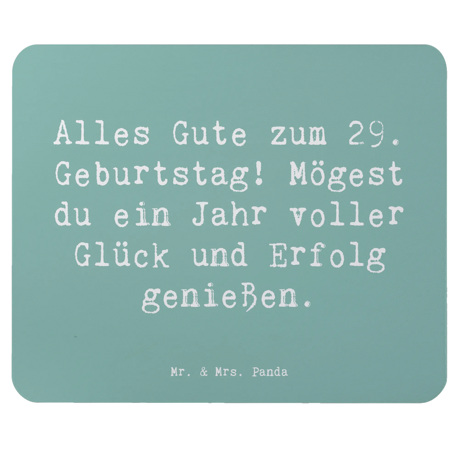 Das Mauspad "Alles Gute zum 29. Geburtstag! Mögest du ein Jahr voller Glück und Erfolg genießen." von Mr. & Mrs. Panda ist das ideale Geschenk für alle, die ihren 29. Geburtstag gebührend feiern möchten. Egal, ob du auf der Suche nach einem besonderen Geburtstagsgeschenk für einen Freund, einen Kollegen oder einfach für dich selbst bist, dieses Mauspad bringt Freude und besondere Erinnerungen in den Arbeitsalltag oder ins Homeoffice.