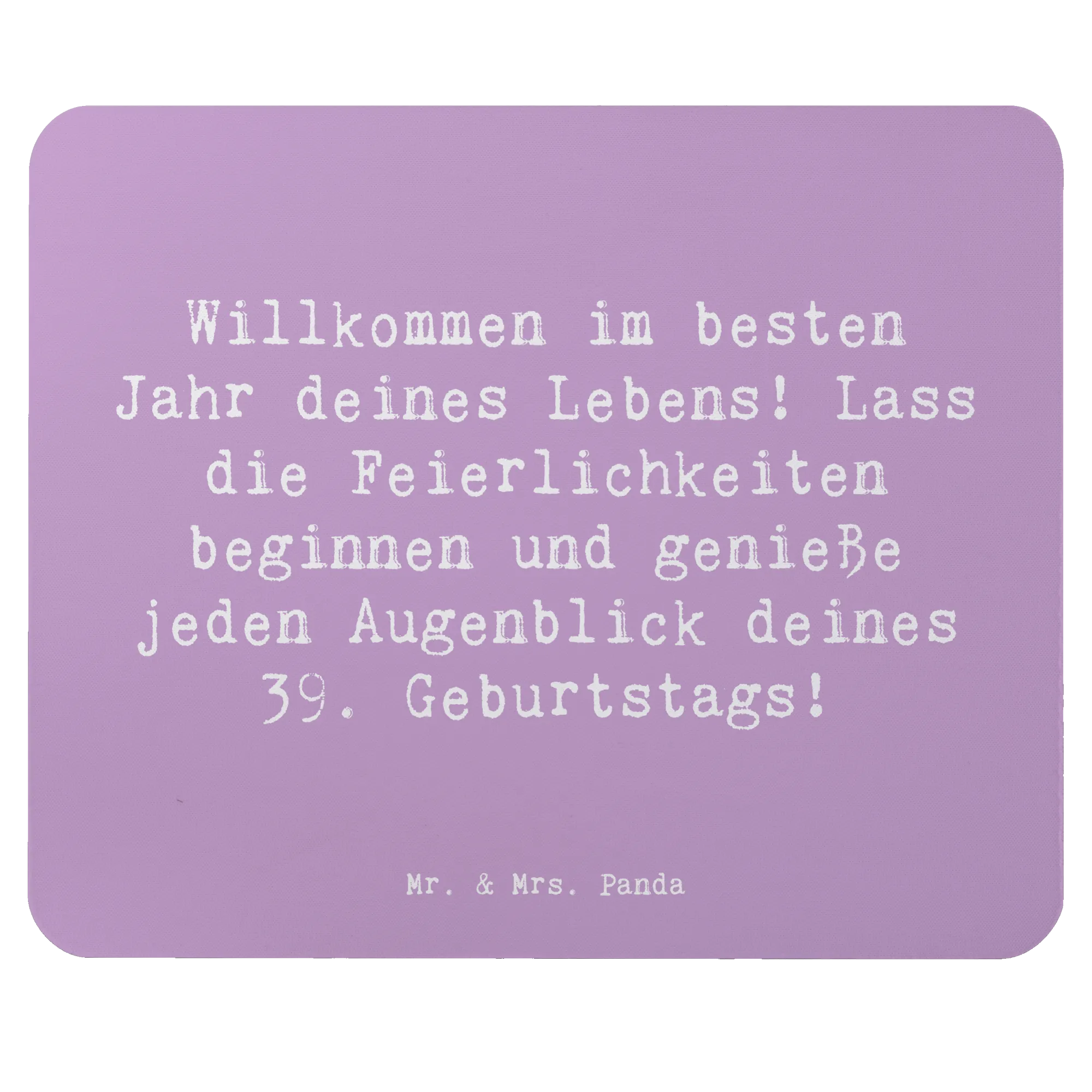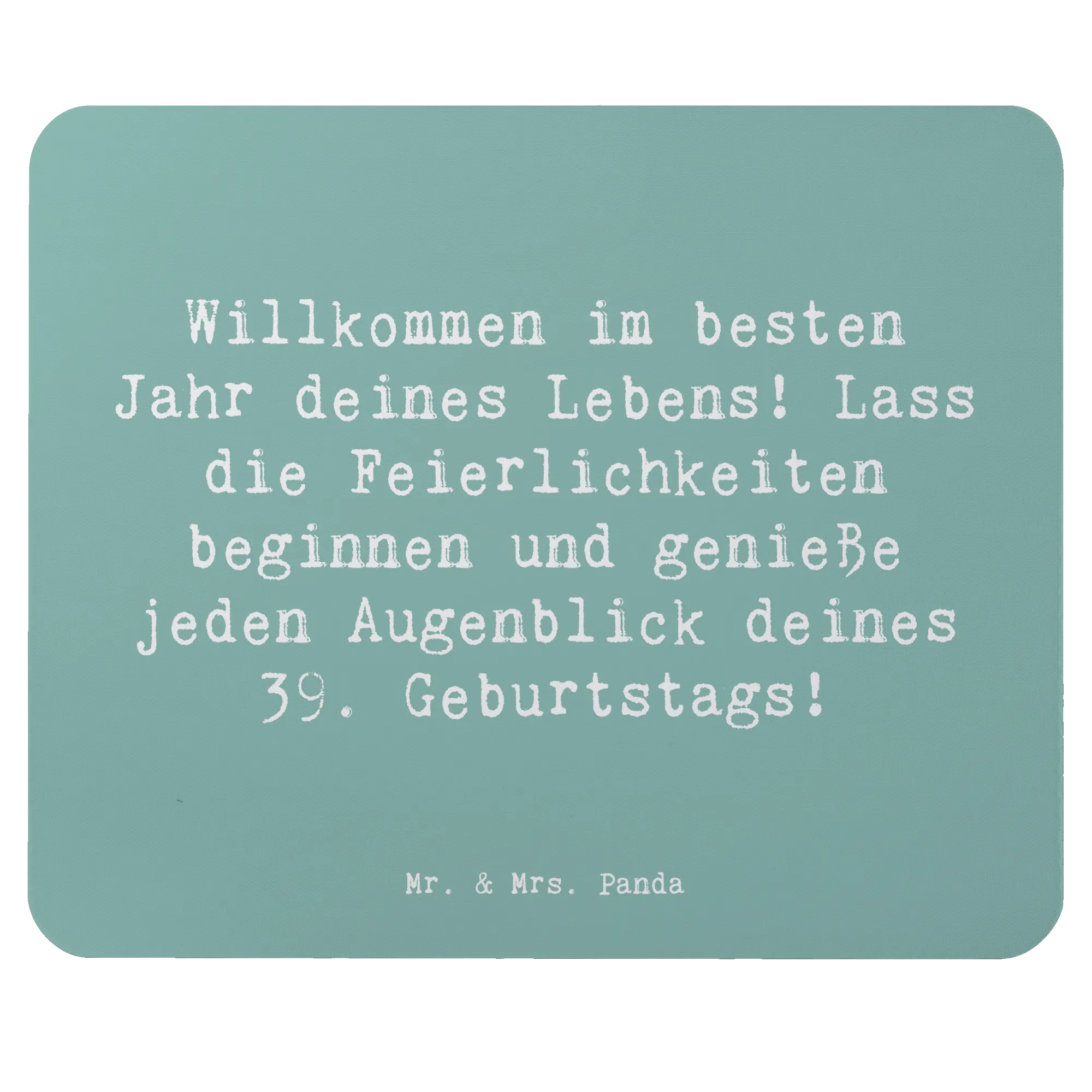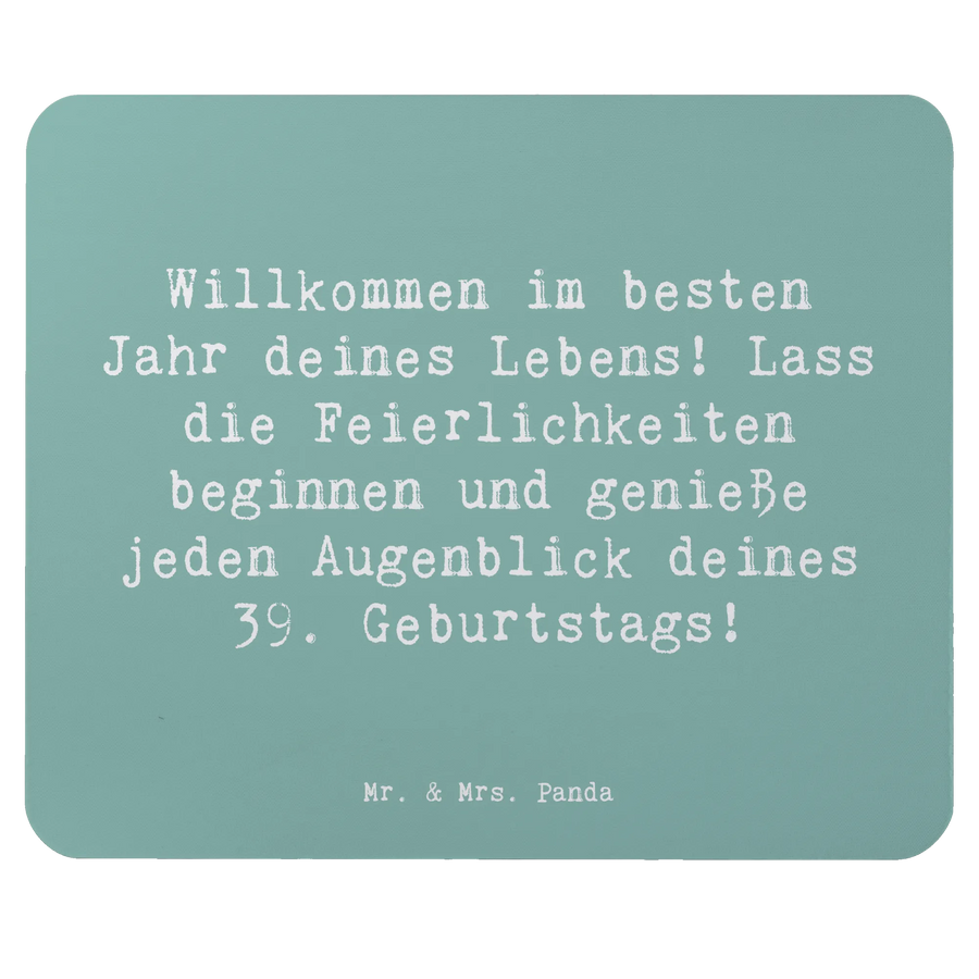 Das perfekte Geschenk zum 39. Geburtstag: Du suchst etwas Persönliches, Praktisches und mit einem Augenzwinkern? Unser Mauspad „39. Geburtstag“ von Mr. & Mrs. Panda trägt den fröhlichen Spruch „Willkommen im besten Jahr deines Lebens! Lass die Feierlichkeiten beginnen und genieße jeden Augenblick deines 39. Geburtstags!“ und zaubert sofort ein Lächeln auf das Gesicht des Geburtstagskinds.