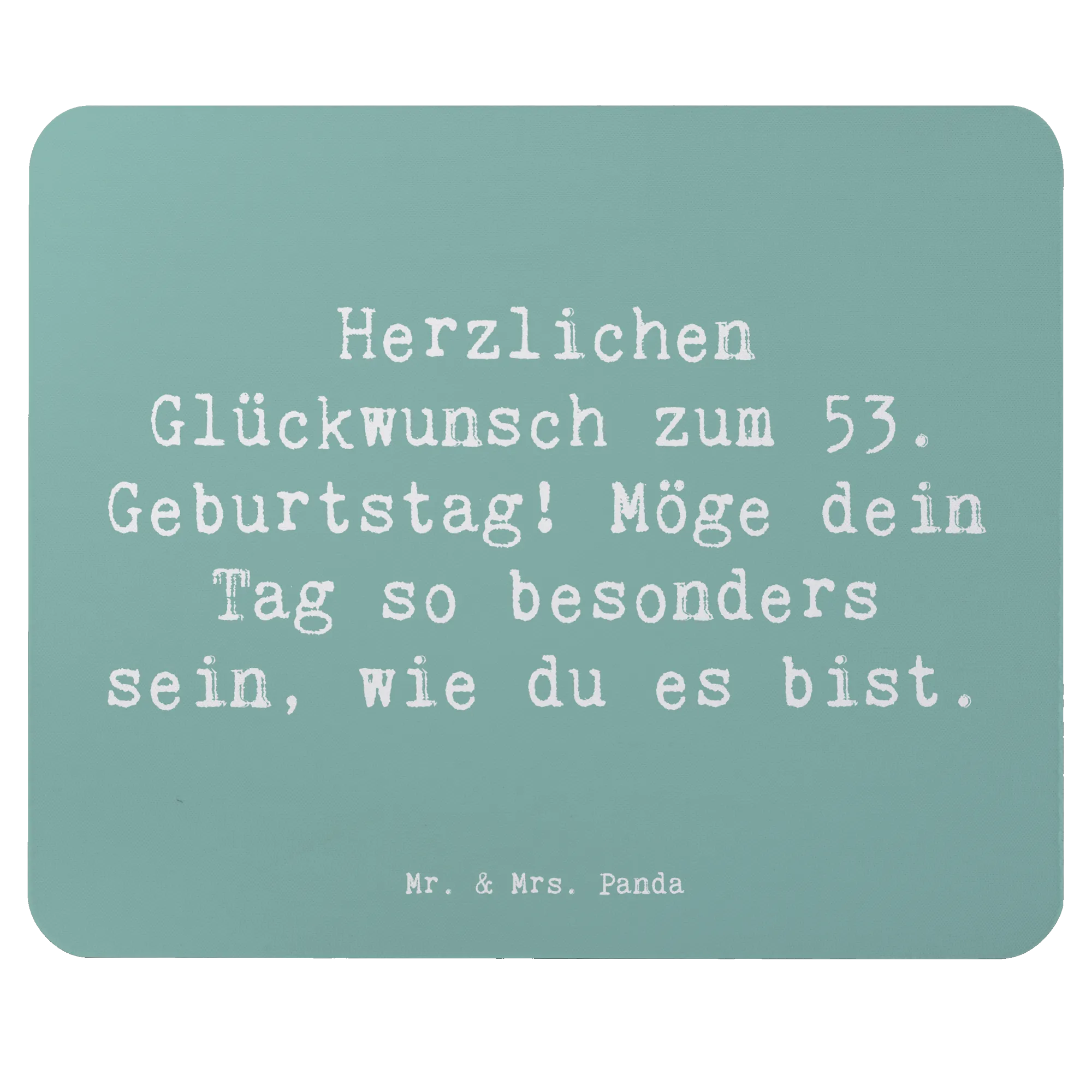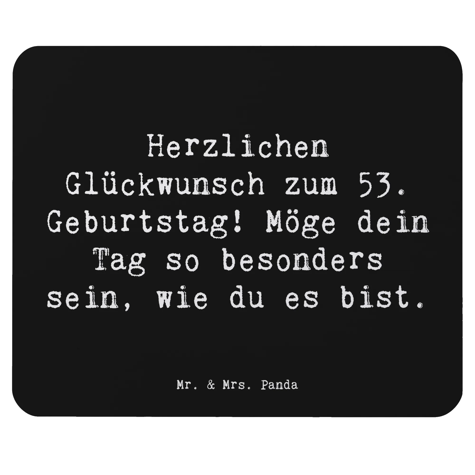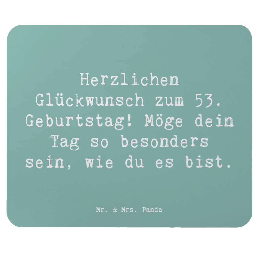 Suchst du nach dem perfekten Geschenk für einen ganz besonderen Menschen, der sein 53. Geburtstag feiert? Dann ist das Mauspad aus der Geburtstagskollektion von Mr. & Mrs. Panda genau das richtige für dich! Mit dem liebevollen Spruch "Herzlichen Glückwunsch zum 53. Geburtstag! Möge dein Tag so besonders sein, wie du es bist." wird jede Arbeitspause zu einem kleinen Fest.