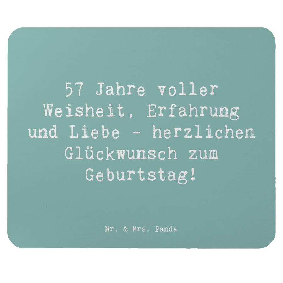Das perfekte Geschenk für alle, die 57 Jahre voller Weisheit, Erfahrung und Liebe feiern – unser einzigartiges Mauspad von Mr. & Mrs. Panda! Mit dem liebevollen Motiv „57 Jahre voller Weisheit, Erfahrung und Liebe - herzlichen Glückwunsch zum Geburtstag!“ wird jedes Schlafzimmer oder Büro zum persönlichen Wohlfühlort. Dieses Mauspad ist nicht nur eine praktische Unterlage für deine Computermaus; es ist vor allem ein ganz besonderes Stück, das den speziellen Anlass würdigt.