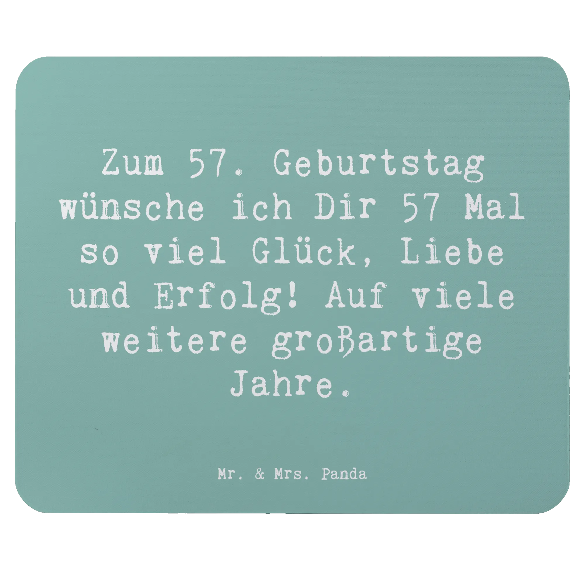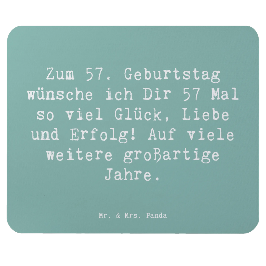 Bist Du auf der Suche nach dem perfekten Geschenk für einen ganz besonderen Menschen, der bald seinen 57. Geburtstag feiert? Dann ist das Mauspad "57. Geburtstag" aus der einzigartigen Geburtstag Alter Kollektion von Mr. & Mrs. Panda genau das Richtige für Dich! Mit dem Slogan "Zum 57. Geburtstag wünsche ich Dir 57 Mal so viel Glück, Liebe und Erfolg! Auf viele weitere großartige Jahre." ist dieses Mauspad nicht nur ein praktisches Accessoire, sondern auch eine liebevolle Geste, die von Herzen kommt.