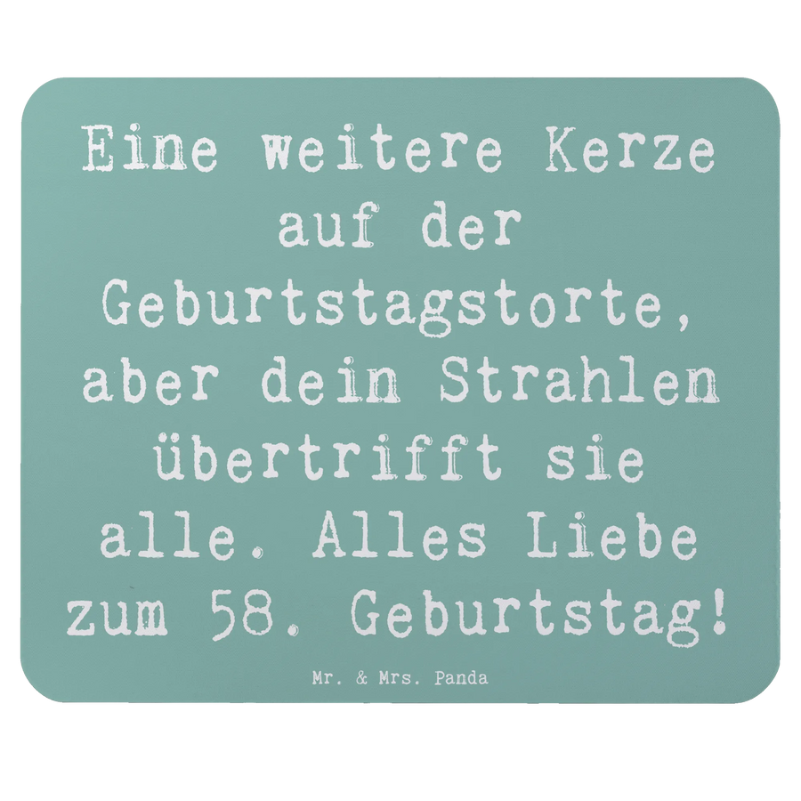 Dieses wunderschöne Mauspad ist nicht nur ein tolles Geschenk für Geburtstagsfeiern, sondern auch für andere Anlässe, die einen besonderen Menschen ehren und feiern. Die einzigartige Geburtstag-Motiv-Kollektion von Mr. & Mrs. Panda bietet eine große Auswahl an bunten, handgezeichneten Designs, die jedem, der seine 58 Jahre feiert, definitiv Freude bereiten. Es ist nicht nur eine Mausunterlage, sondern auch eine Aufforderung zum Feiern und Genießen des Lebens.