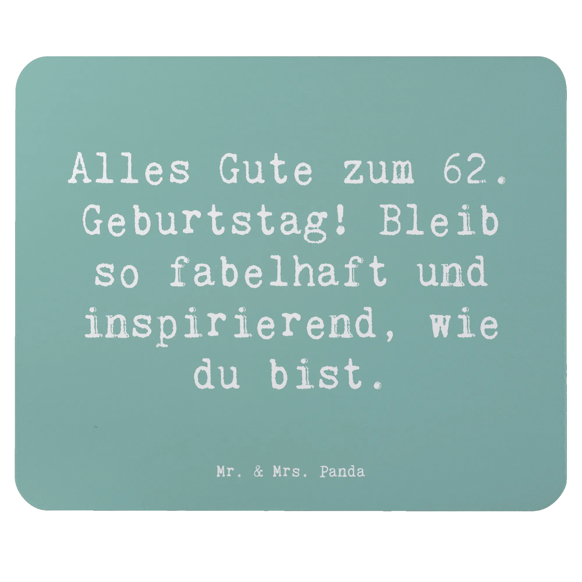 Das Mauspad von Mr. & Mrs. Panda mit dem liebevollen Motiv "Alles Gute zum 62. Geburtstag! Bleib so fabelhaft und inspirierend, wie du bist." ist das perfekte Geschenk für deine Liebsten, die ihren 62. Geburtstag feiern. Es vereint Funktionalität mit einer süßen Botschaft und verleiht jedem Büro oder Arbeitszimmer eine persönliche Note.