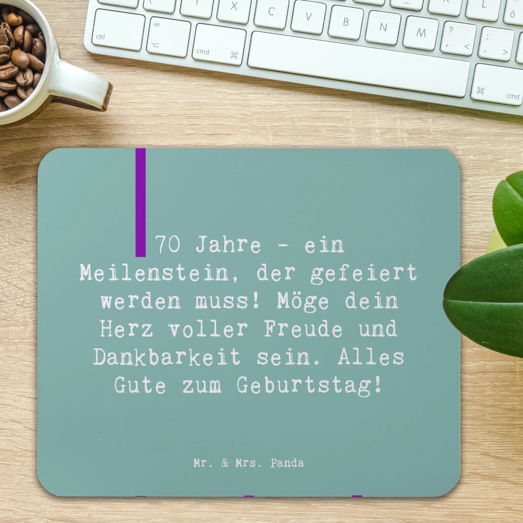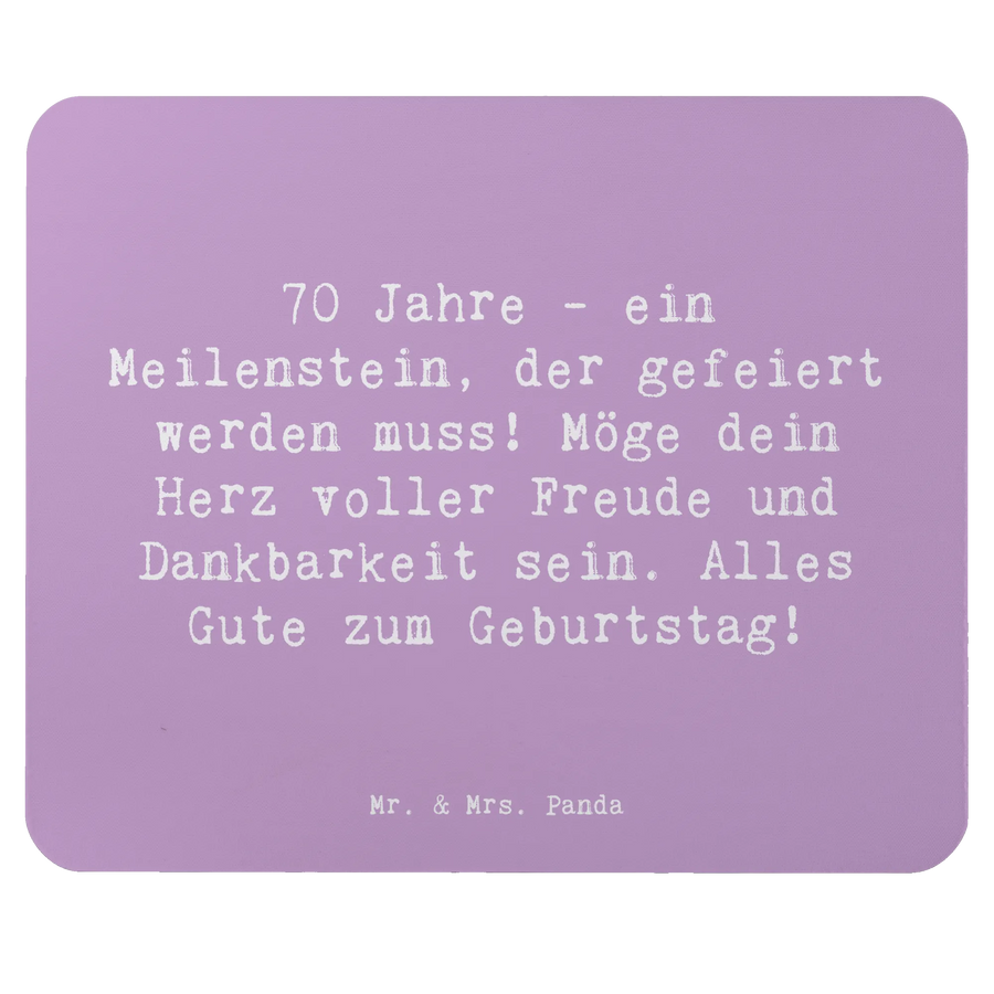 Suchst Du das perfekte Geschenk zum 70. Geburtstag? Dann haben wir genau das passende für Dich: Das einzigartige Mauspad von Mr. & Mrs. Panda mit dem liebevollen Slogan "70 Jahre - ein Meilenstein, der gefeiert werden muss! Möge dein Herz voller Freude und Dankbarkeit sein. Alles Gute zum Geburtstag!" Dieses praktische und zugleich dekorative Mauspad ist die ideale Ergänzung für jedes Arbeitszimmer oder Homeoffice und bringt Freude in den Büroalltag.