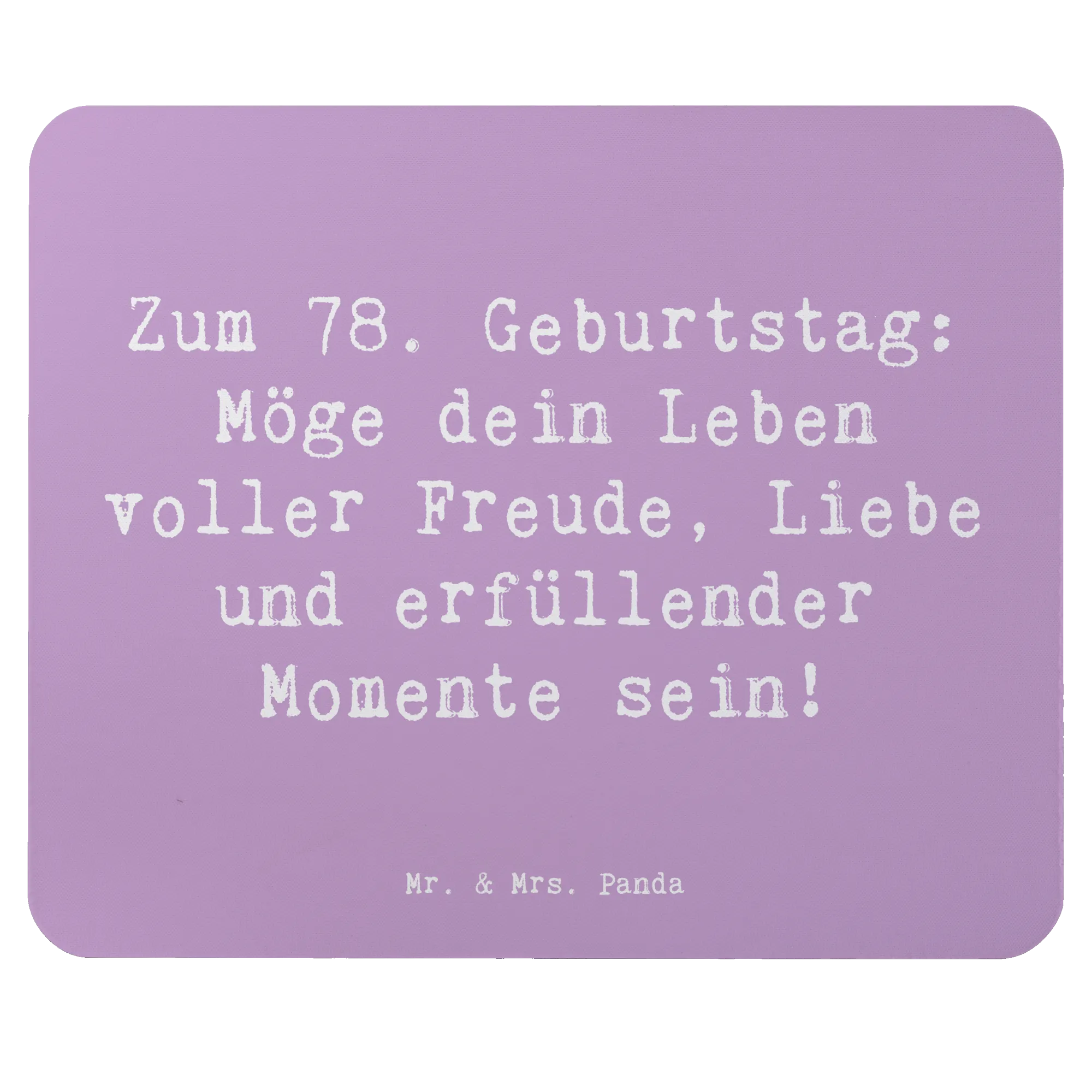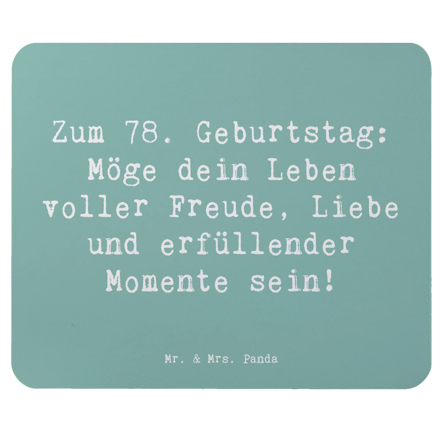 Suchst du das perfekte Geschenk zum 78. Geburtstag? Dann ist das Mauspad von Mr. & Mrs. Panda genau das Richtige! Dieses wunderschöne und angenehme Mauspad ist nicht nur ein praktisches PC Zubehör für jeden Arbeitsplatz oder das Homeoffice, sondern auch eine liebevolle Geste, die zeigt, wie viel dir der Beschenkte bedeutet. Das besondere Motiv "Zum 78. Geburtstag: Möge dein Leben voller Freude, Liebe und erfüllender Momente sein!" sorgt für ein Lächeln und lässt jeden Arbeitstag ein kleines bisschen heller werden.