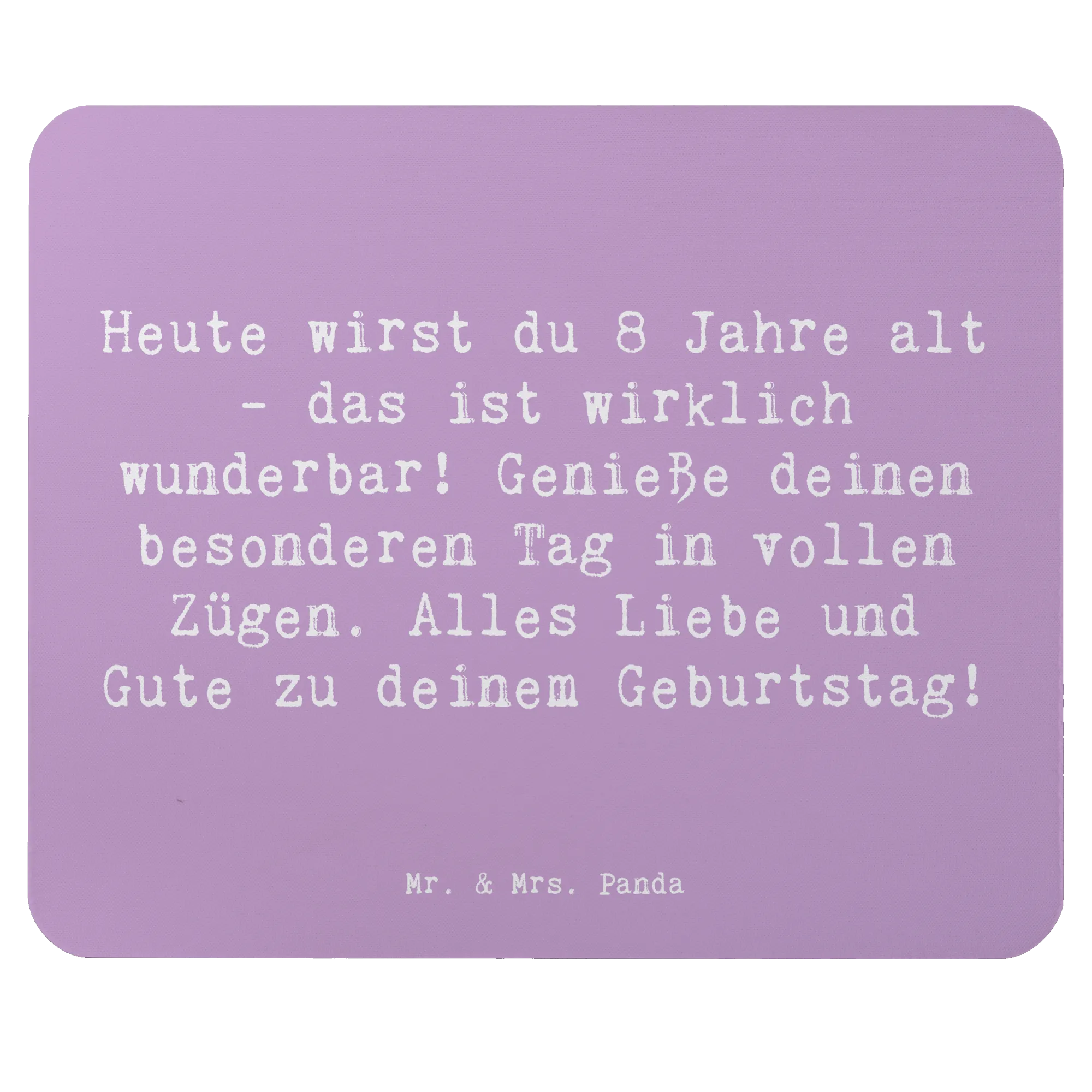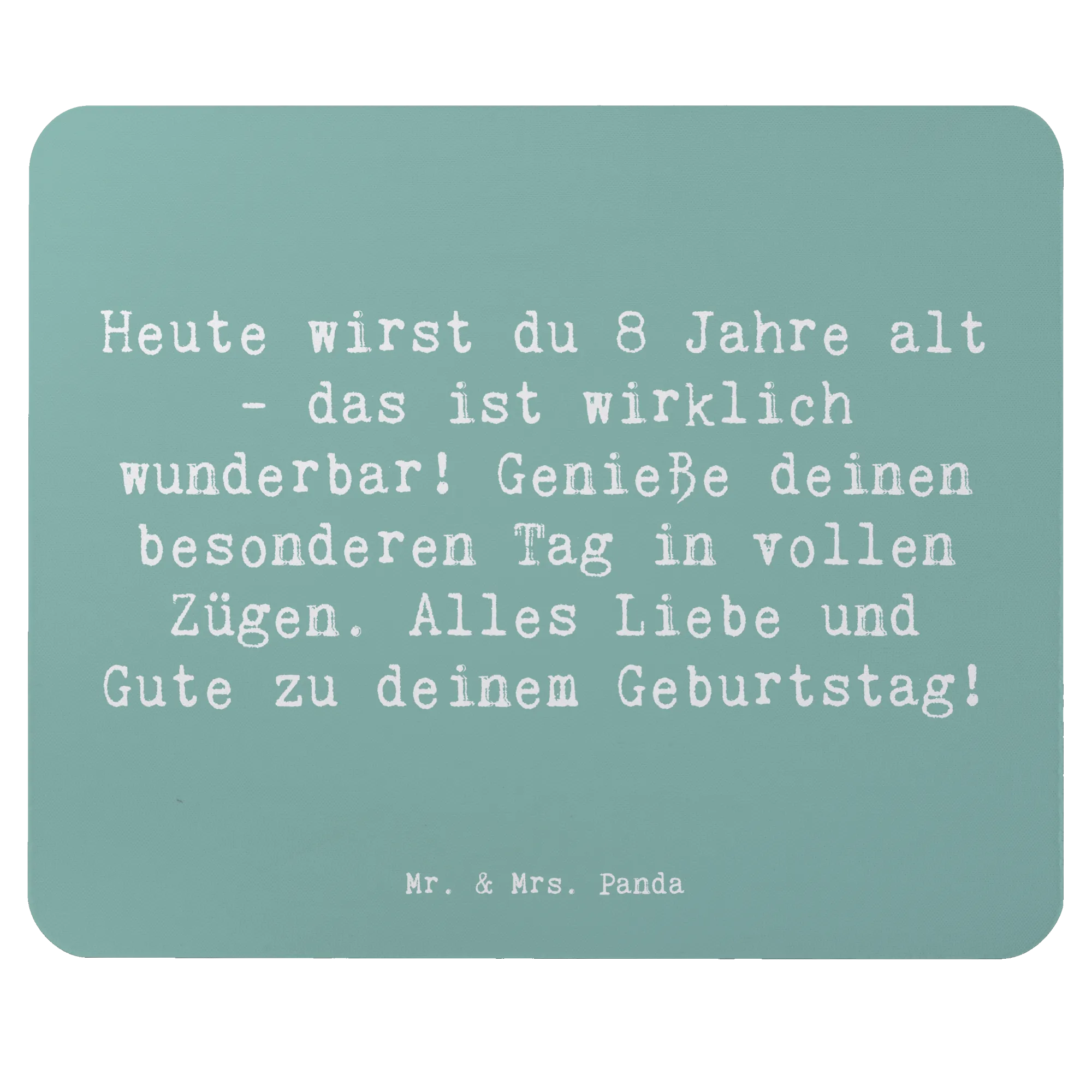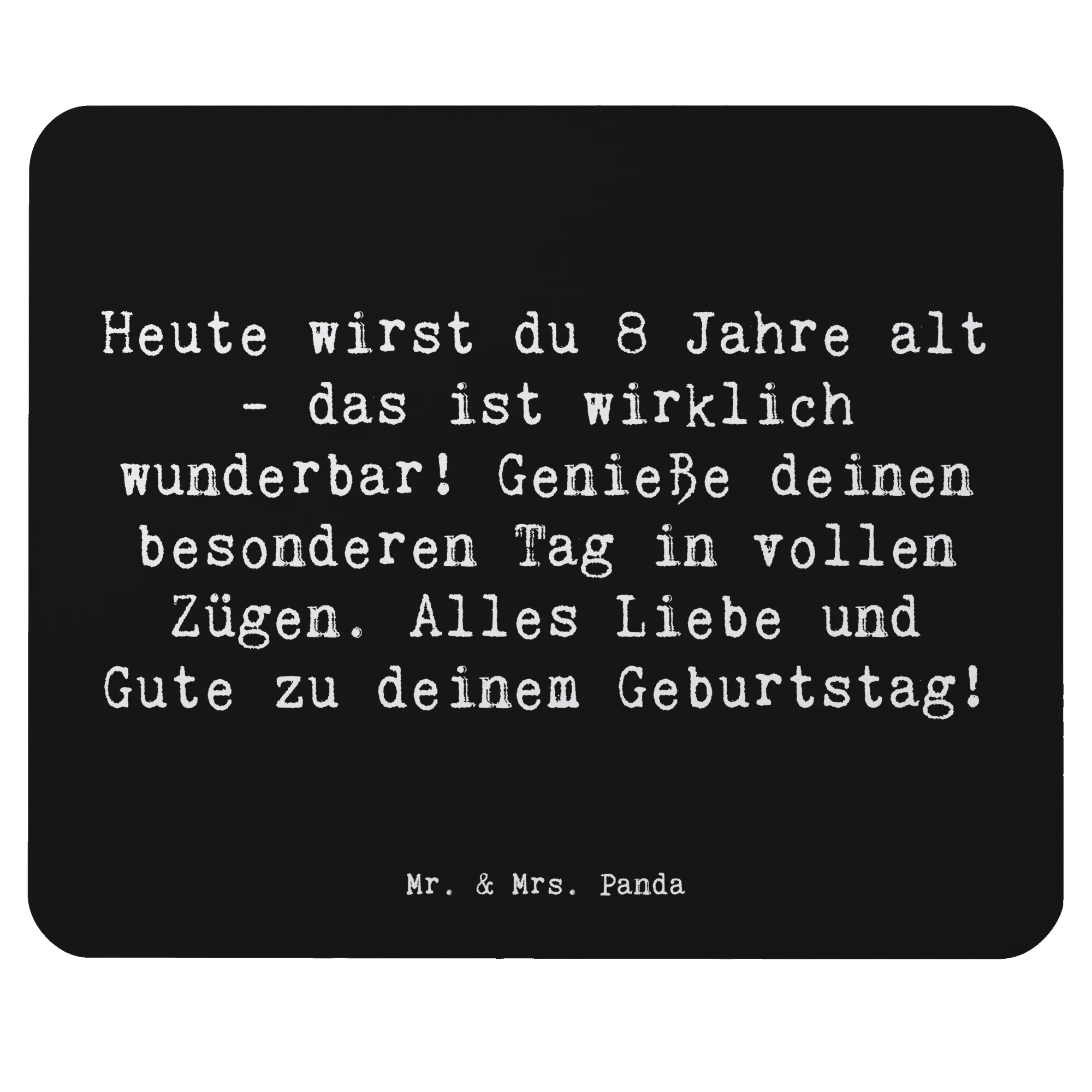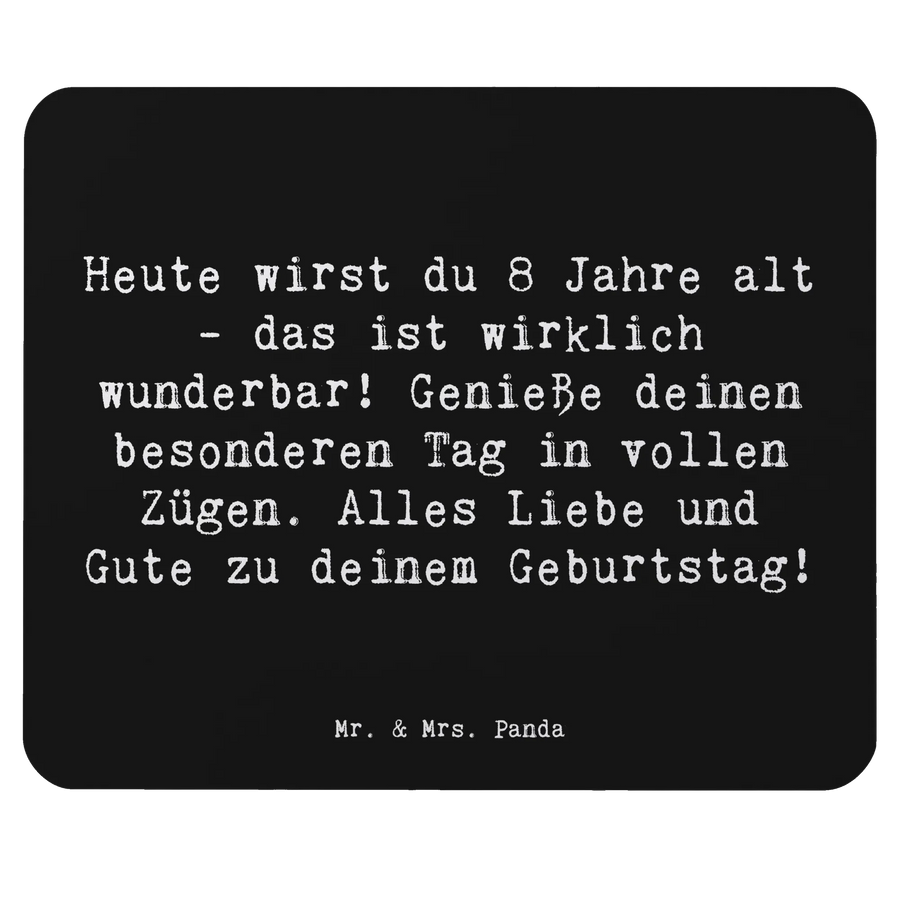 Das Mauspad "Heute wirst du 8 Jahre alt - das ist wirklich wunderbar! Genieße deinen besonderen Tag in vollen Zügen. Alles Liebe und Gute zu deinem Geburtstag!" von Mr. & Mrs. Panda ist nicht nur ein schlichtes Computerzubehör, sondern ein liebevolles und einzigartiges Geschenk zum 8. Geburtstag!