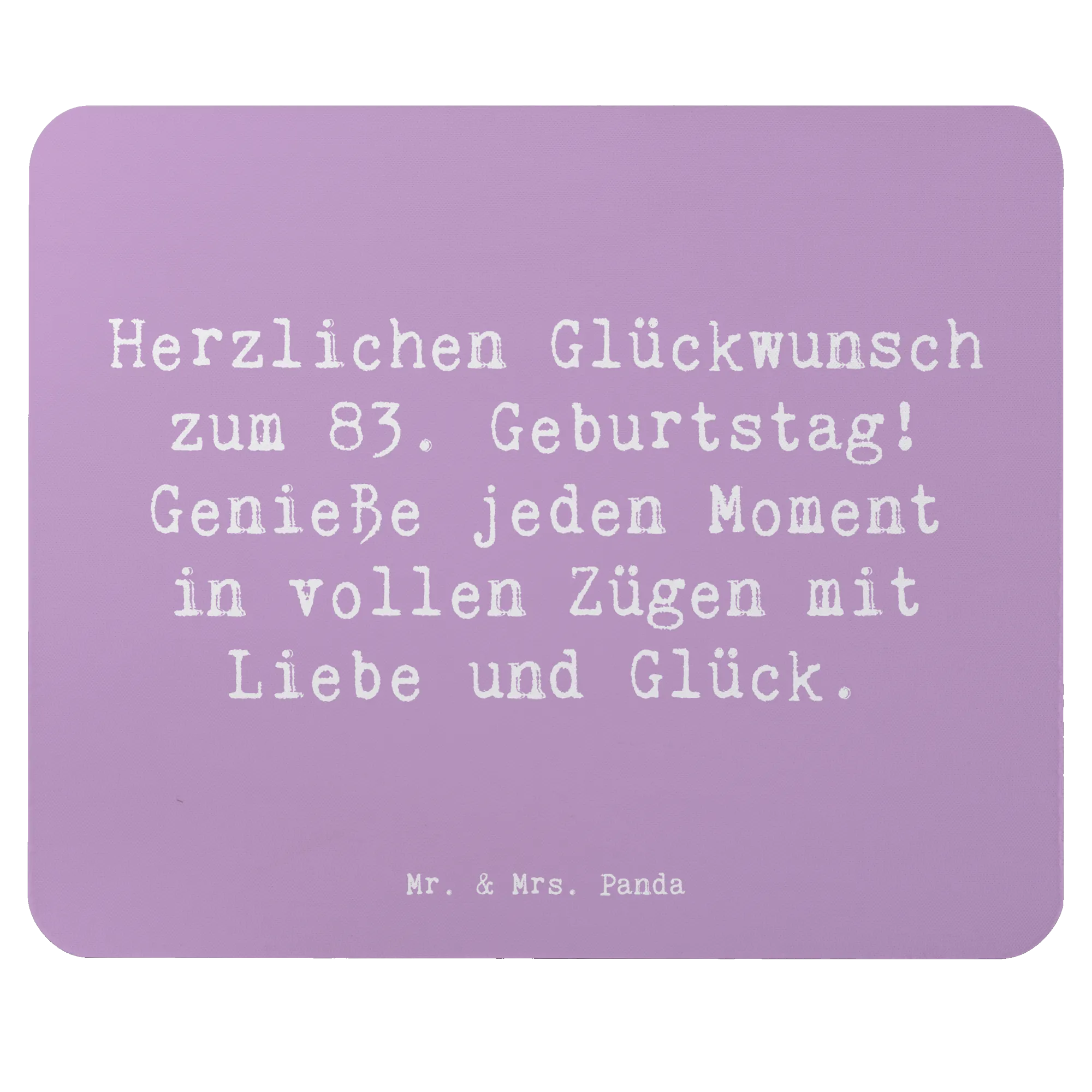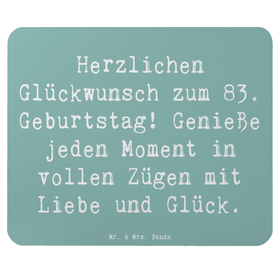Suchst du das perfekte Geschenk zum 83. Geburtstag? Dann ist das Mauspad mit dem Motto "Herzlichen Glückwunsch zum 83. Geburtstag! Genieße jeden Moment in vollen Zügen mit Liebe und Glück." von Mr. & Mrs. Panda genau das richtige für dich!