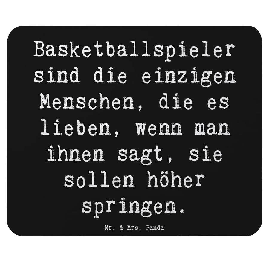 Entdecke das perfekte Mauspad für alle Sportbegeisterten und Basketball-Fans! Das wunderschöne Mauspad von Mr. & Mrs. Panda ist nicht nur ein echter Hingucker, sondern auch ein praktisches Accessoire für dein Homeoffice oder dein Arbeitszimmer. Mit dem liebevoll gestalteten Motiv eines Basketballspielers und dem witzigen Spruch: "Basketballspieler sind die einzigen Menschen, die es lieben, wenn man ihnen sagt, sie sollen höher springen." bringt es gleich gute Laune auf deinen Schreibtisch.