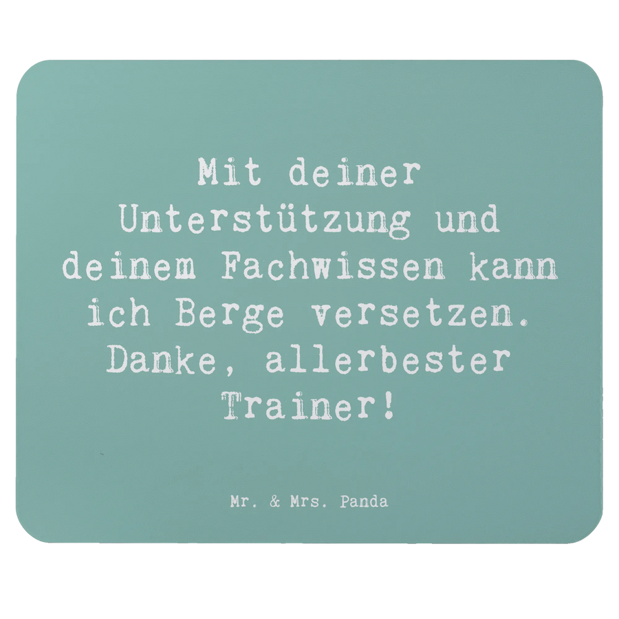 Mit dem einzigartigen Mauspad "Trainer" aus der Danke-Kollektion von Mr. & Mrs. Panda bringst Du nicht nur Farbe an Deinen Arbeitsplatz, sondern zeigst auch Deine Wertschätzung gegenüber den Menschen, die Dich im Alltag unterstützen. Es ist das perfekte Geschenk für Trainer, Lehrer oder Mentoren, die Dir helfen, Deine Ziele zu erreichen. Das Mauspad ziert der inspirierende Spruch: "Mit deiner Unterstützung und deinem Fachwissen kann ich Berge versetzen. Danke, allerbester Trainer!" und ist damit eine liebevolle Geste, die in Erinnerung bleibt.