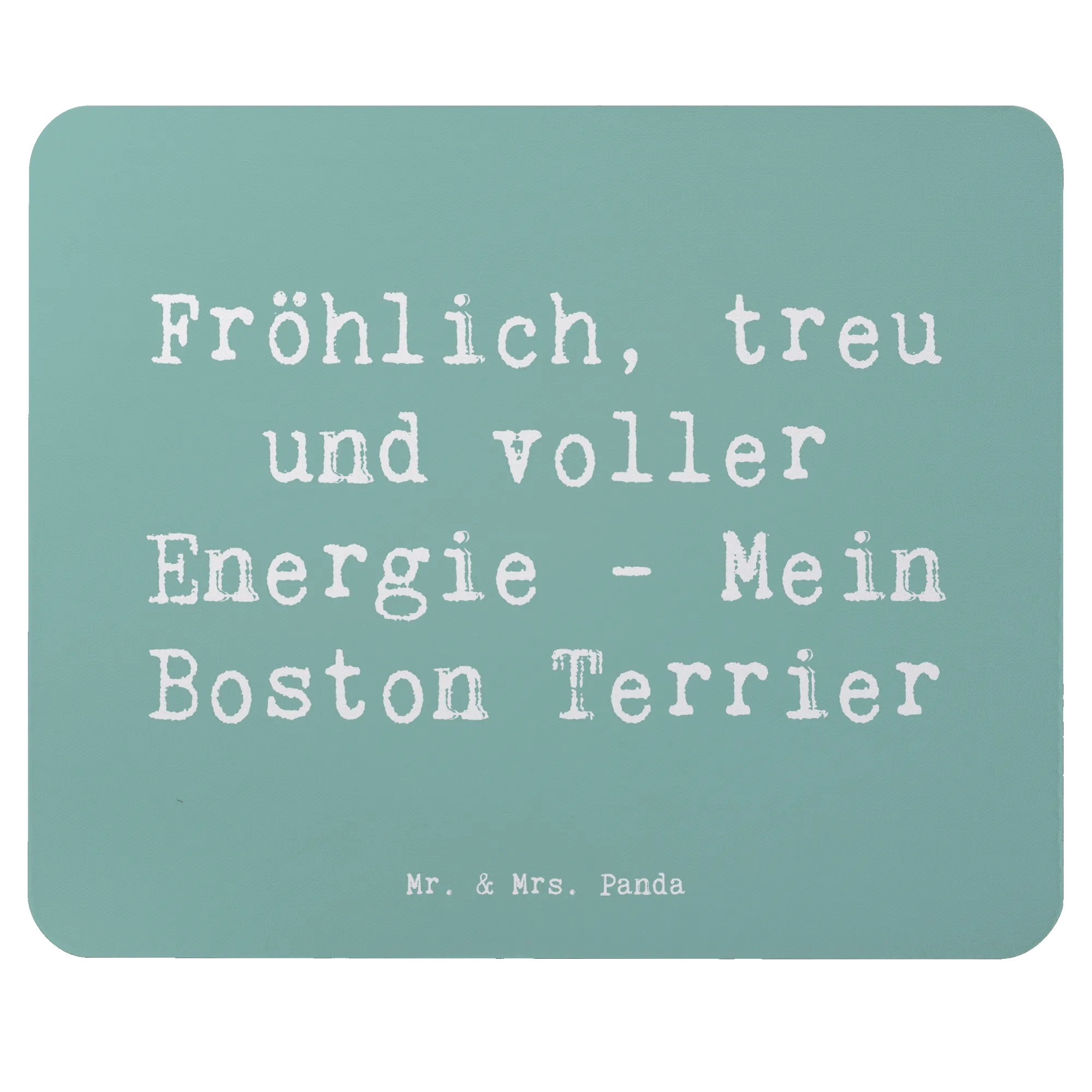 Das wunderschöne Mauspad von Mr. & Mrs. Panda mit dem fröhlichen Motiv „Fröhlich, treu und voller Energie - Mein Boston Terrier“ ist das perfekte Geschenk für alle Hundefans und eine tolle Bereicherung für Dein Homeoffice oder Büro!