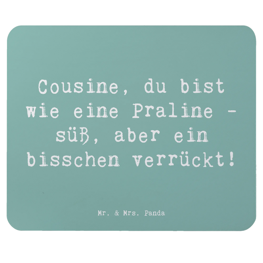 Suchst Du ein Geschenk, das von Herzen kommt? Unser Mauspad „Cousine“ aus der Kollektion Familie & Verwandte von Mr. & Mrs. Panda kombiniert liebevolles Design mit praktischem Nutzen. Mit dem frechen Spruch „Cousine, du bist wie eine Praline - süß, aber ein bisschen verrückt!“ zauberst Du garantiert ein Lächeln auf jedes Gesicht. 🎁